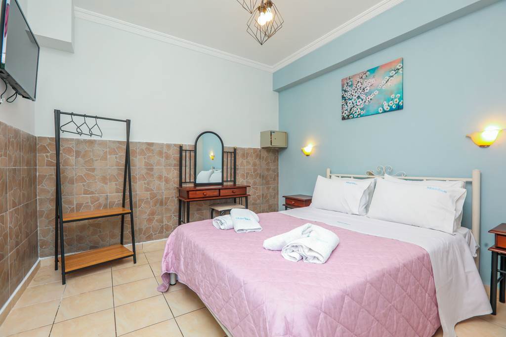 Up on the hill you will find the typically Greek, Marina Apartments, nestled between the luscious green trees you will instantly feel relaxed soaking up the sun around the pool or take a dip and enjoy a ice cold drink from the swim up bar. It is only a short stroll to the resort centre and beach where you can find a selection of bars and restaurants to sample some local delights.