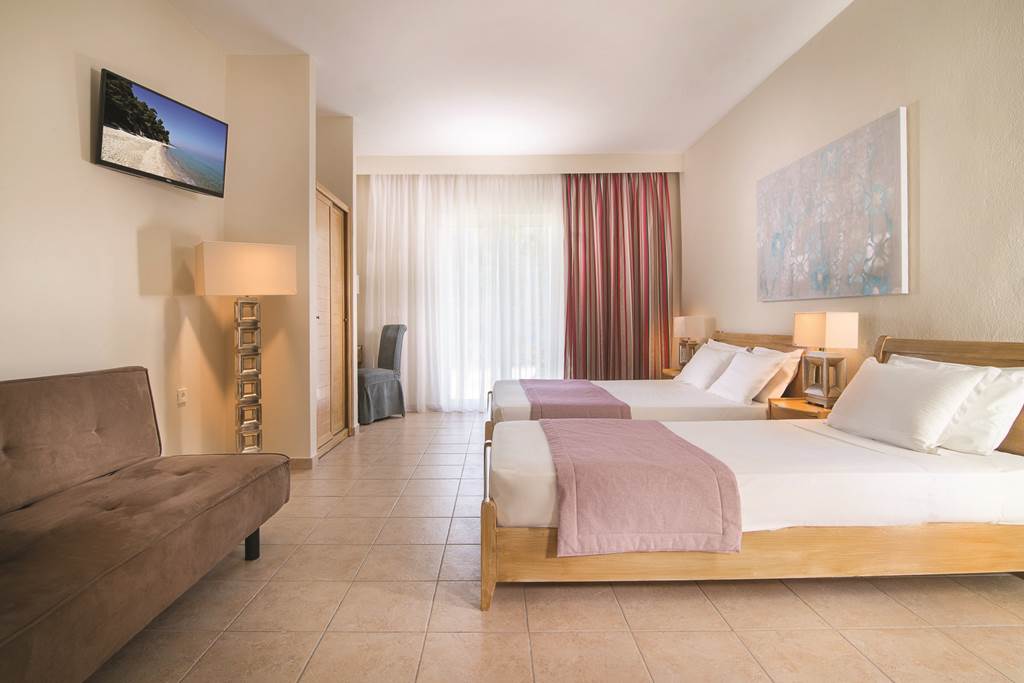 Situated on a hillside, the Alkion Hotel is nestled within 15 acres of forest and greenery. Complete with colourful gardens and a superb sea view, this charming hotel is the perfect choice for those seeking a scenic, peaceful break, with the beach just a short ride away on the hotel?s handy shuttle service and the village of Kriopigi within easy reach. At the open pool bar, you can relax with refreshing exotic cocktails and a tempting variety of dishes. The fresh, modern and spacious rooms, each with a fully equipped kitchenette, make the Alkion Hotel ideal for couples, friends and families alike.Double rooms sleep up to 2 adults and have bathroom containing a bath or shower, air conditioning, hairdryer, television, fridge and balcony or terrace. Room upgrade options and Sole Use rooms are also available.