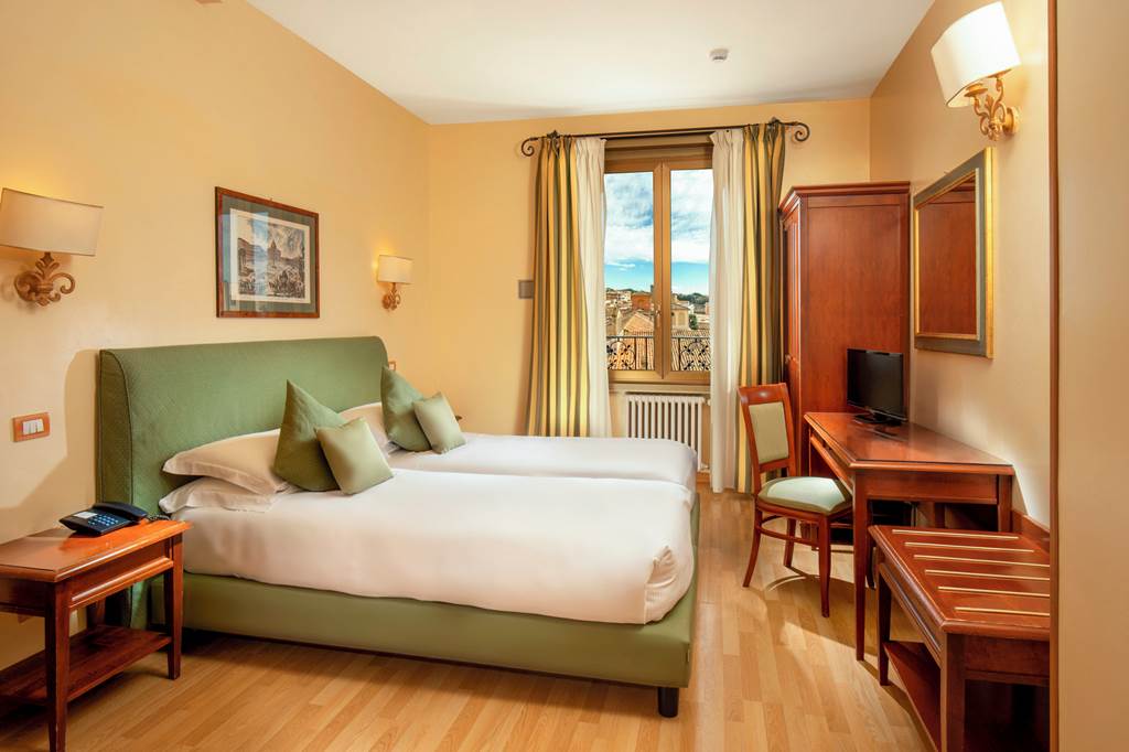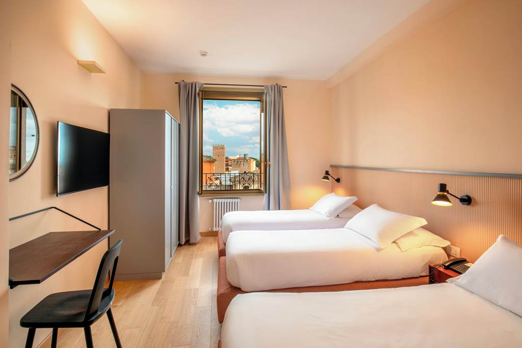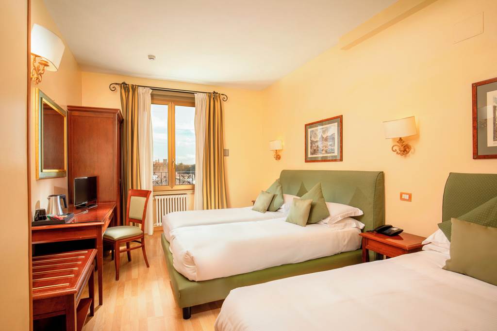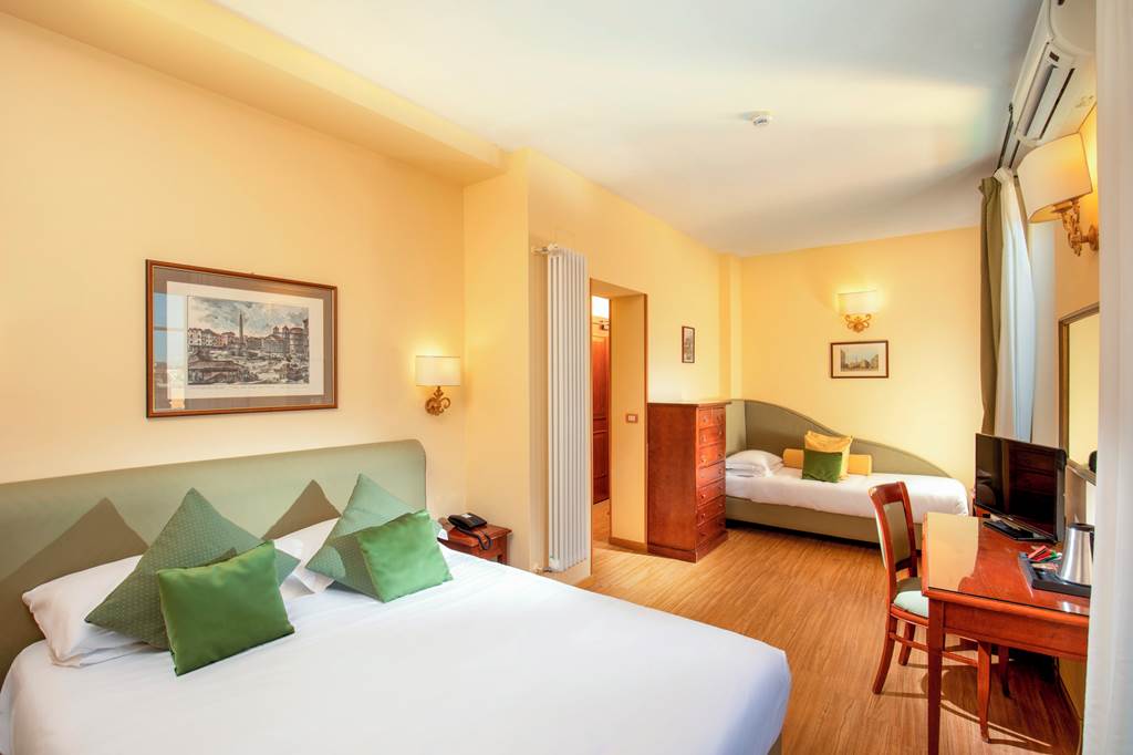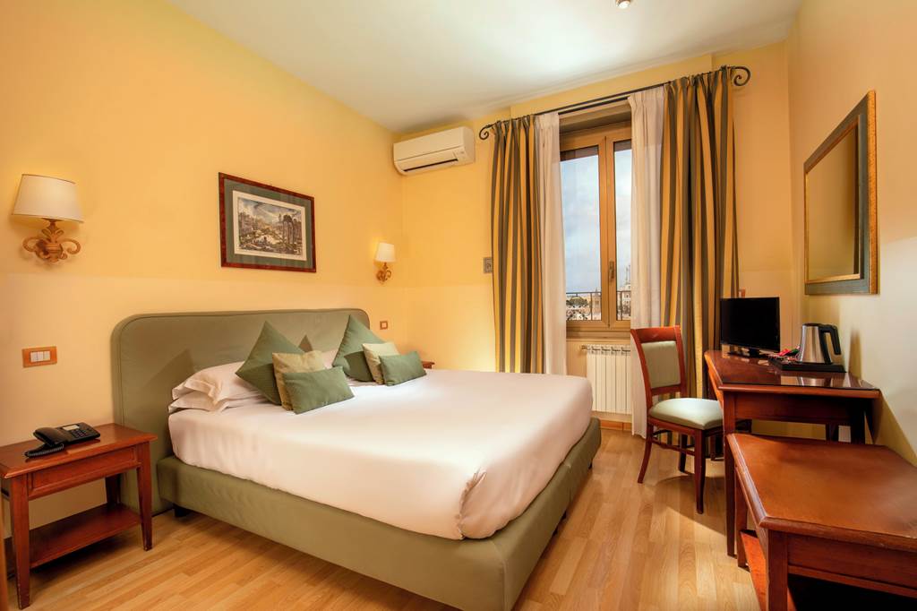 Located in the Rione Monti district and residing atop of Esquilino Hill, one of the famous Seven Hills of Rome lies Hotel Colosseum. Take a stroll through the narrow streets and find yourself immersed in the culture of Rome with an array of shops, bars and restaurants available within the immediate vicinity and popular sights like the Colosseum, Arch of Constantine and Trevi Fountain also nearby. After a day of visiting Rome?s treasures, relax on the furnished rooftop and enjoy views over the Eternal city.Double or Twin rooms sleep up to 2 adults and have bathroom containing bath or a shower, air conditioning, hairdryer, television and safety deposit box. Triple rooms and Sole Use rooms are also available.