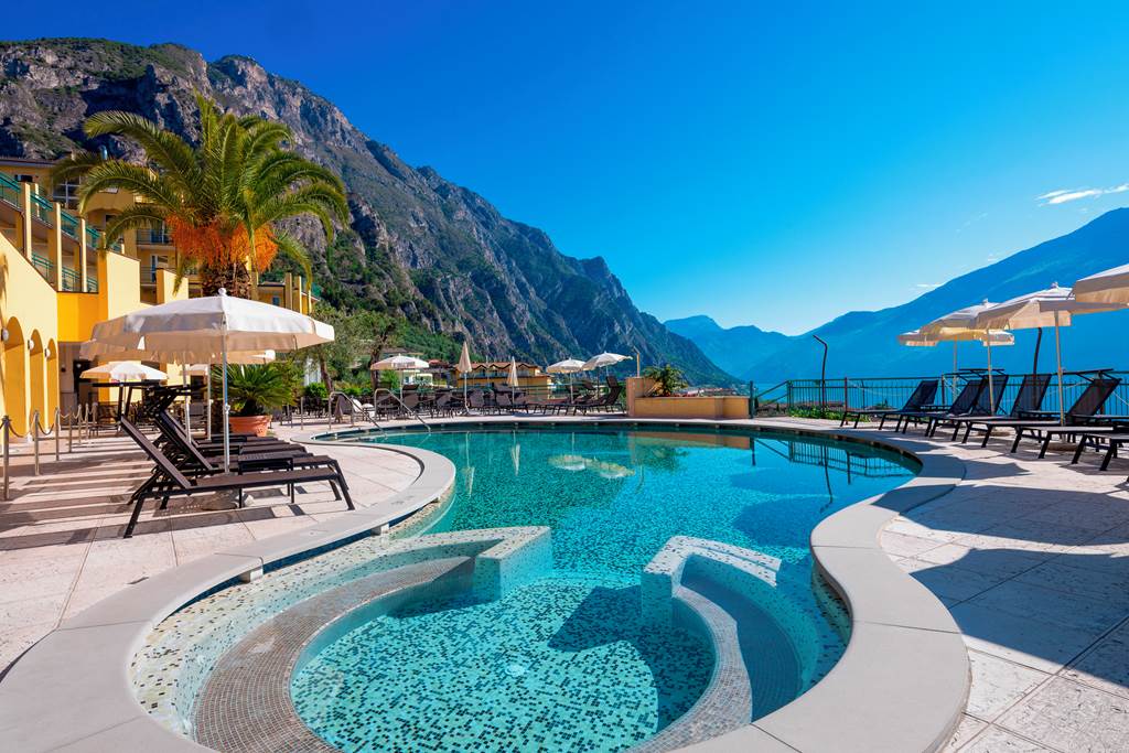 The Hotel Cristina Limone is perfect for those looking to combine a hillside location with breathtaking views over Lake Garda. It is surrounded by gardens, terraces and open air areas perfect for relaxing and enjoying the views. It has a choice of two pools, one of which is shared with its sister Hotel San Pietro and a restaurant and bar to ensure you are kept refreshed along with daily afternoon tea and biscuits. A warm welcome, great service and pleasant, spacious rooms make this a great choice for good value for money stay within sight of the beautiful Lake Garda.