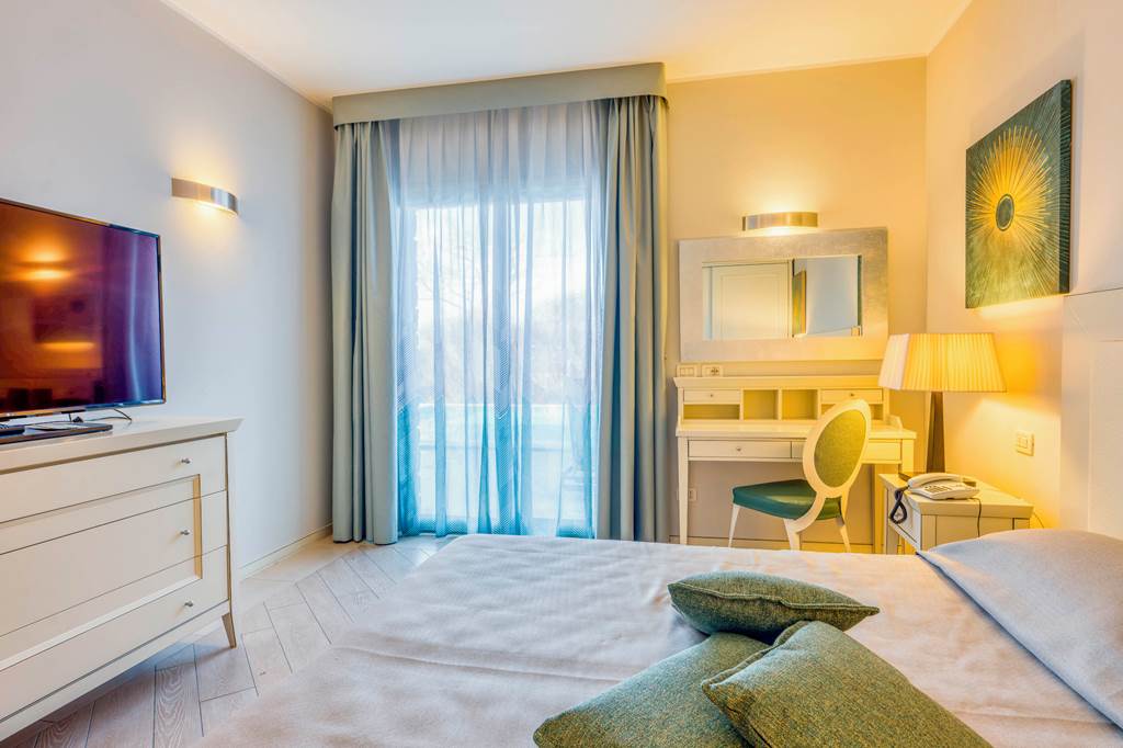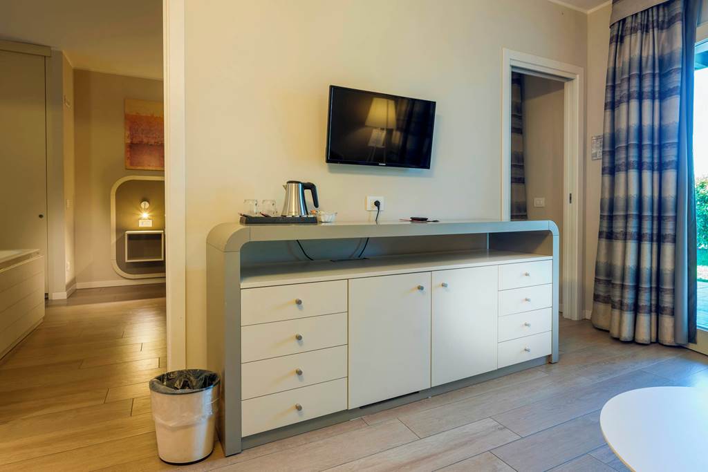 Parc Hotel Germano is situated in a peaceful location in Bardolino just a short distance from Lake Garda. The hotel offers a range of amenities, including two outdoor pools, an indoor pool, a spa and a gym. Its comfortable suites are equipped with modern amenities and offer stunning views of the surrounding landscape. The tranquil setting makes it an ideal place to unwind, while still being close to the town centre and the lake. With its blend of comfort, wellness facilities and scenic surroundings, the hotel is ideal for a relaxing getaway.Suites sleep up to 4 adults and have bathroom containing a bath or shower, air conditioning (weather dependent), hairdryer, bathrobes and slippers, television, kettle, safety deposit box and terrace. Sole Use rooms are also available.