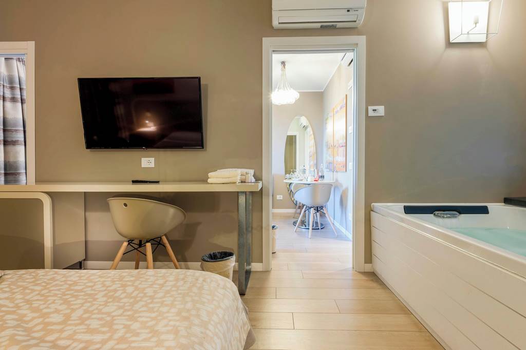 Suites sleep up to 4 adults and have bathroom containing a bath or shower, air conditioning (weather dependent), hairdryer, bathrobes and slippers, television, kettle, safety deposit box and terrace. Sole Use rooms are also available.