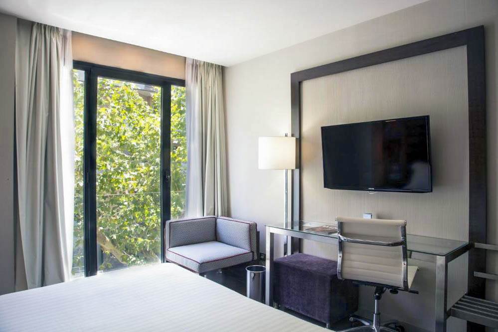 Located in the Sants district, the Pestana Arena Barcelona is a stylish 4* hotel, just a short walk from Placa d?Espanya and close to public transport links, making it easy to explore the city, allowing guests to explore famous attractions such as La Sagrada Familia, Las Ramblas, and Passeig de Gràcia. This modern hotel offers comfortable and well-equipped rooms, designed to provide a relaxing stay and a peaceful night?s sleep. With facilities such as a sauna, gym and Lobby-Bar, the hotel offers a welcoming and convenient stay in one of Barcelona?s most vibrant districts.Double rooms sleep up to 2 adults and have bathroom containing a shower, air conditioning, hairdryer, flat screen television and safety deposit box. Room upgrade option and Sole Use rooms are also available.
