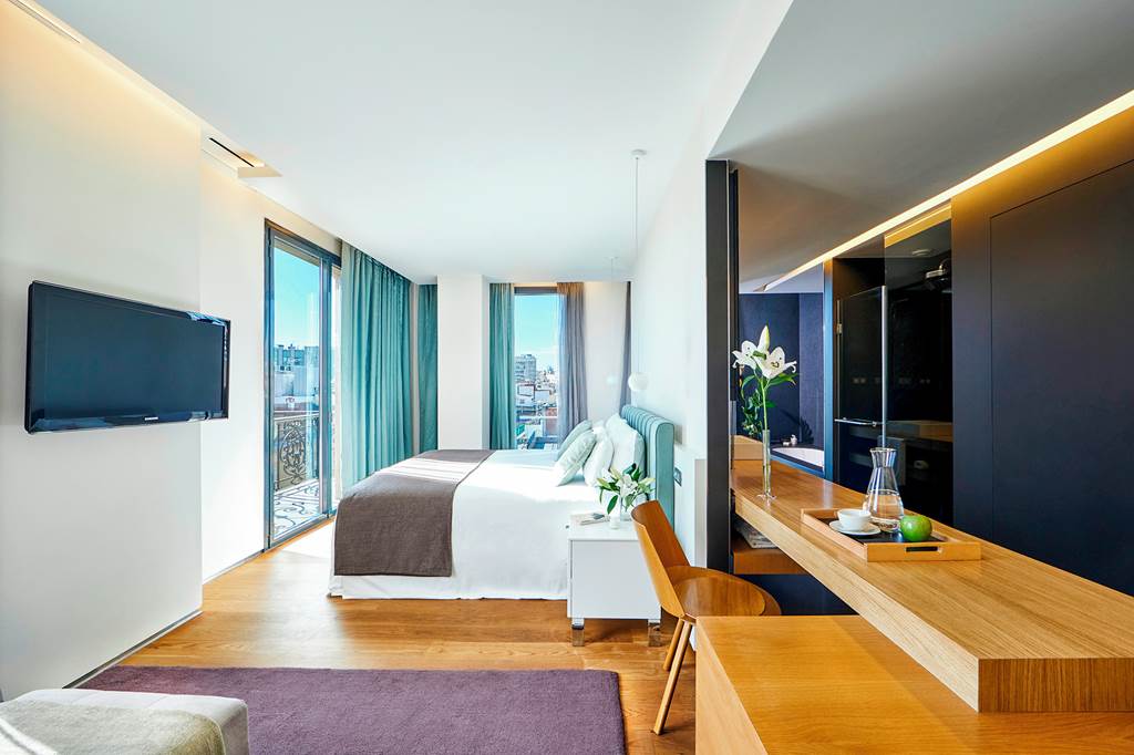 The five-star Ohla Barcelona is the perfect choice for those looking for a sanctuary of class and calm in the middle of Barcelona?s bustling historical centre. Ideally located for shopping and sightseeing, a stay here means you?re close to the city?s Gothic Quarter, Plaza Catalunya and the Passeig de Gracia. By night, dine out in the nearby Ciutat Vella with its abundance of eateries or stay in and enjoy a meal at the hotel restaurant Caelis which specialises in traditional Catalan cuisine and tapas dishes and is run by Michelin-star awarded chef; Romain Fornell. Finish off your evening with a cocktail in the hotel?s rooftop bar offering spectacular views of this beautiful city.Essential rooms sleep up to 2 adults and have bathroom containing a shower, hairdryer, bathrobe and slippers, television, mini-bar*, safety deposit box* and wi-fi. Room upgrade options are also available.