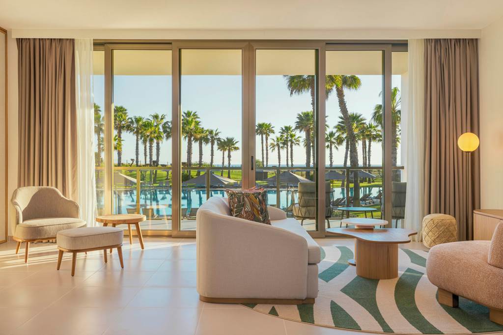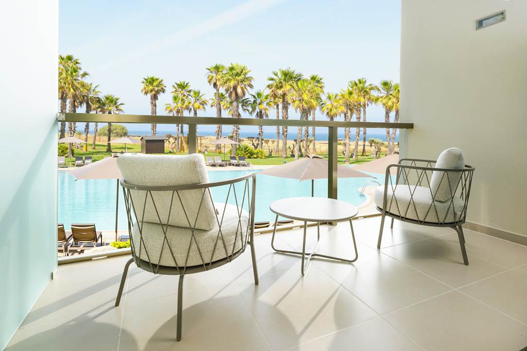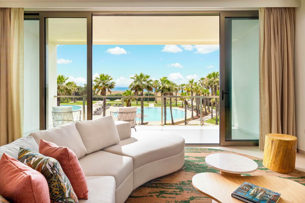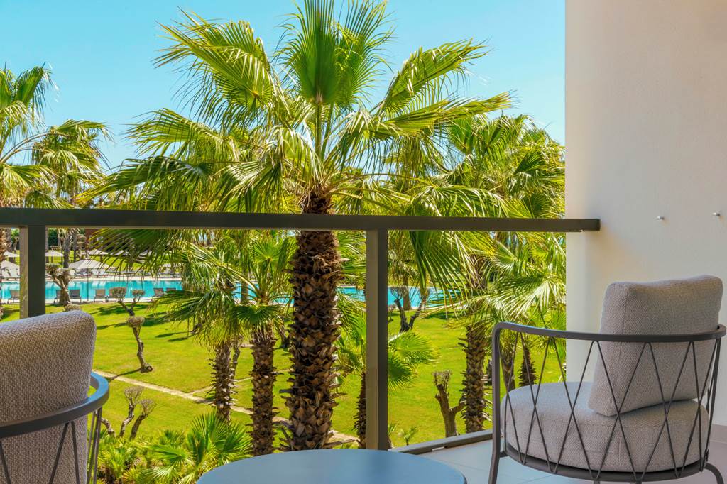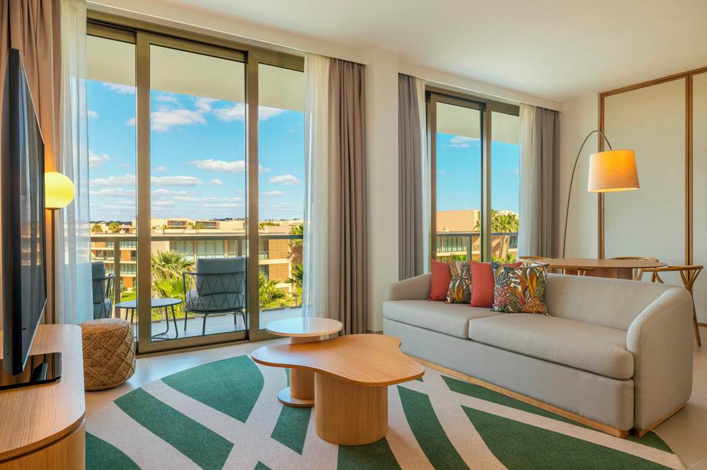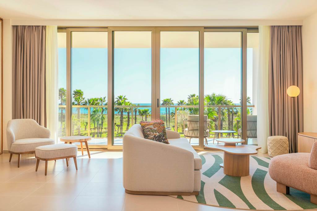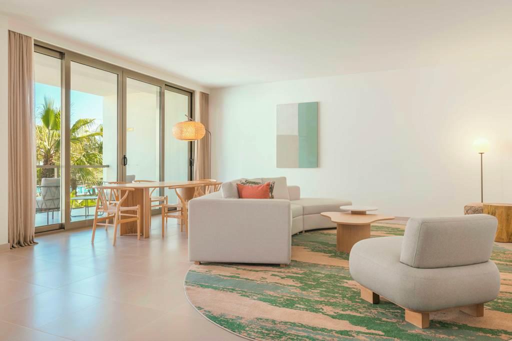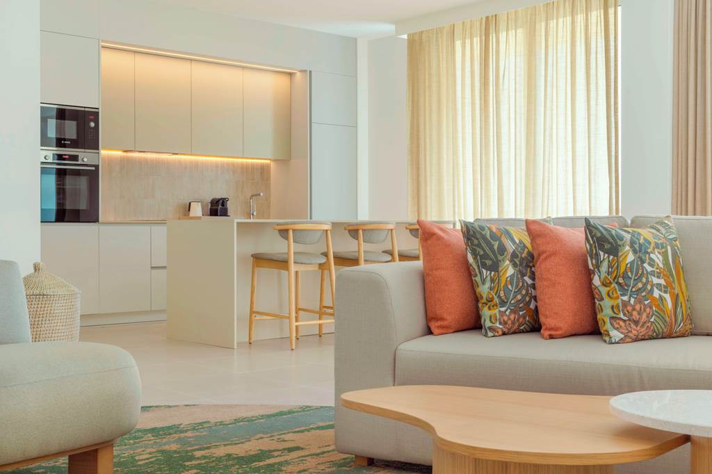 Double NAU rooms sleep 2 adults and have bathroom containing a shower, air conditioning, hairdryer, bathrobe and slippers, flat screen television, coffee making facilities and a balcony or terrace. Double rooms with Sea View, Junior suites with a separate living area and Three Bedroom suites sleeping up to 6 adults are also available.