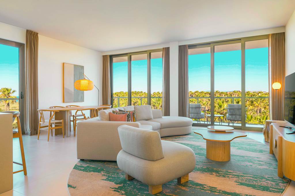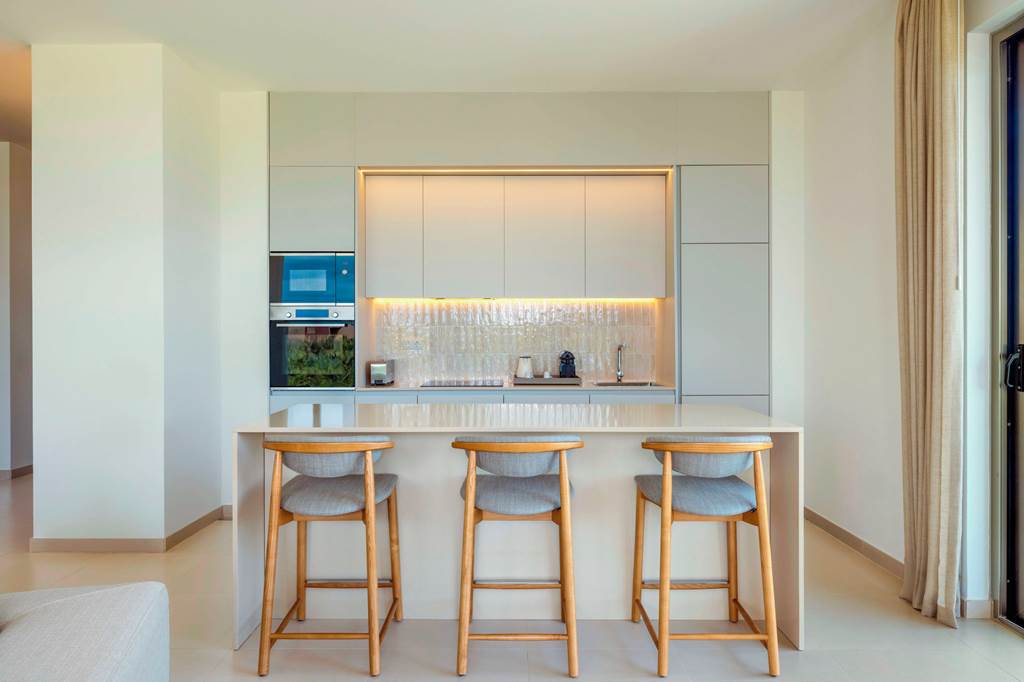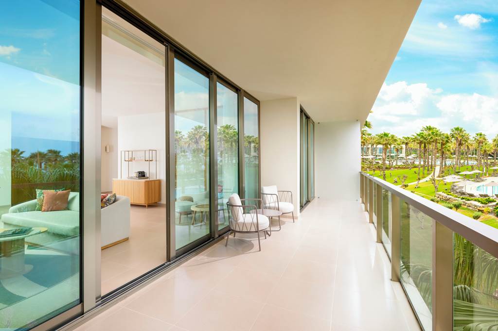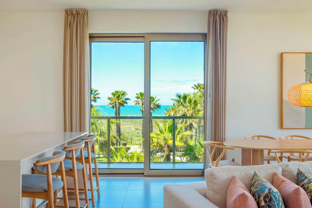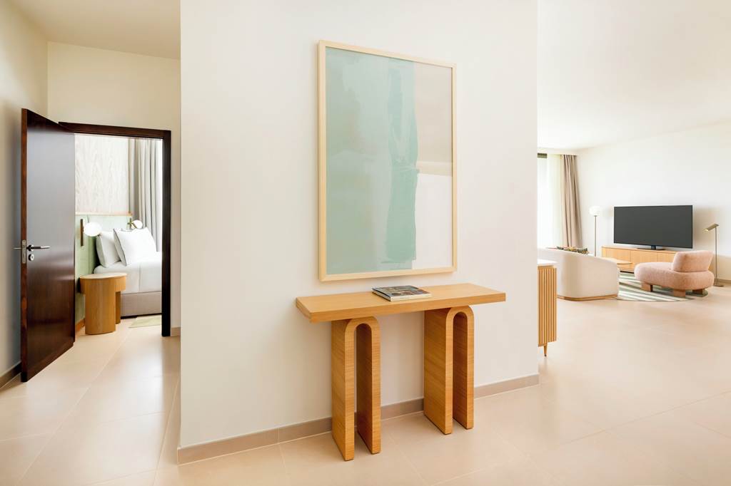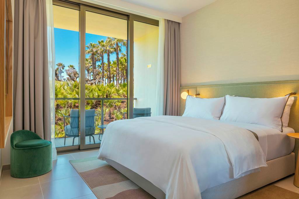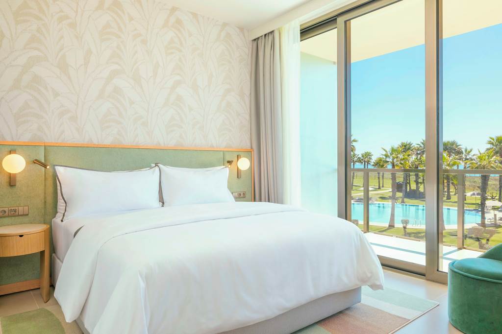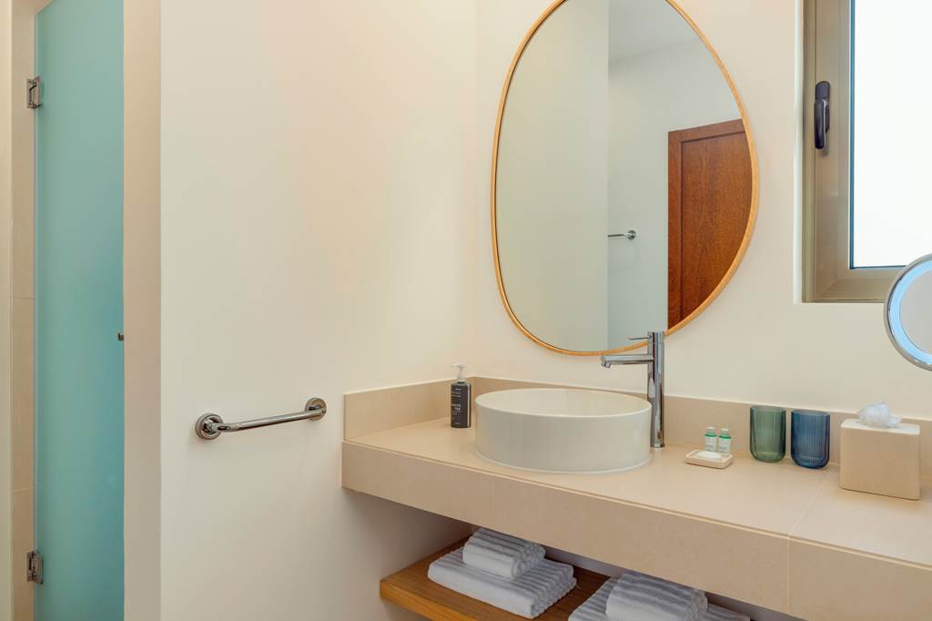 Double NAU rooms sleep 2 adults and have bathroom containing a shower, air conditioning, hairdryer, bathrobe and slippers, flat screen television, coffee making facilities and a balcony or terrace. Double rooms with Sea View, Junior suites with a separate living area and Three Bedroom suites sleeping up to 6 adults are also available.