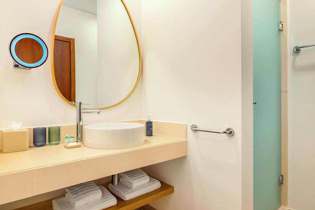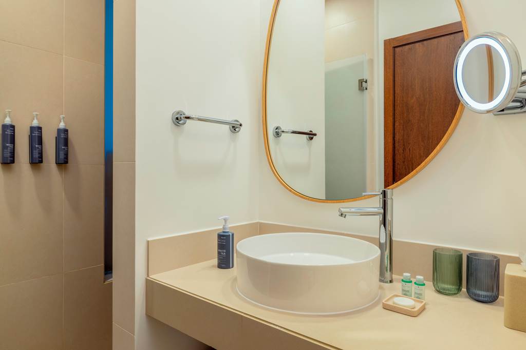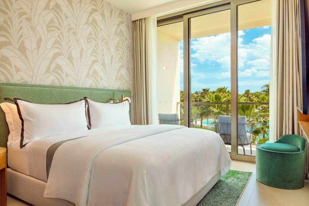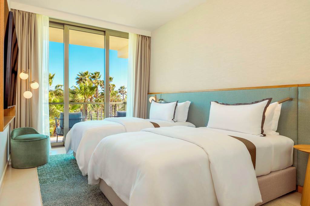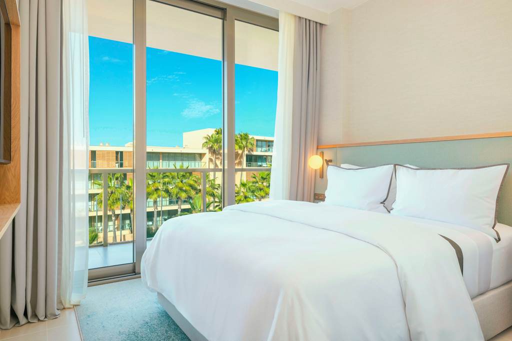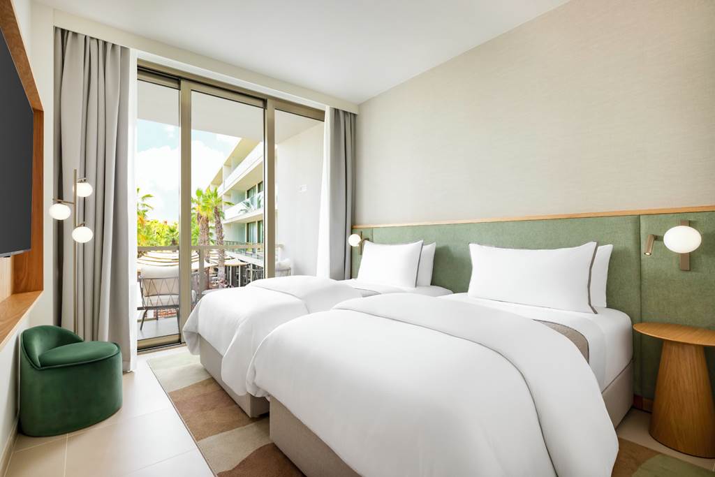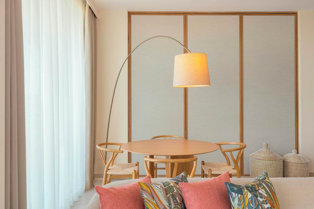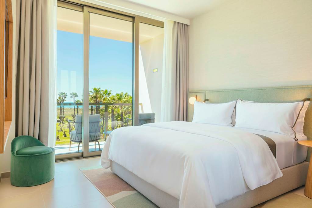 Double NAU rooms sleep 2 adults and have bathroom containing a shower, air conditioning, hairdryer, bathrobe and slippers, flat screen television, coffee making facilities and a balcony or terrace. Double rooms with Sea View, Junior suites with a separate living area and Three Bedroom suites sleeping up to 6 adults are also available.