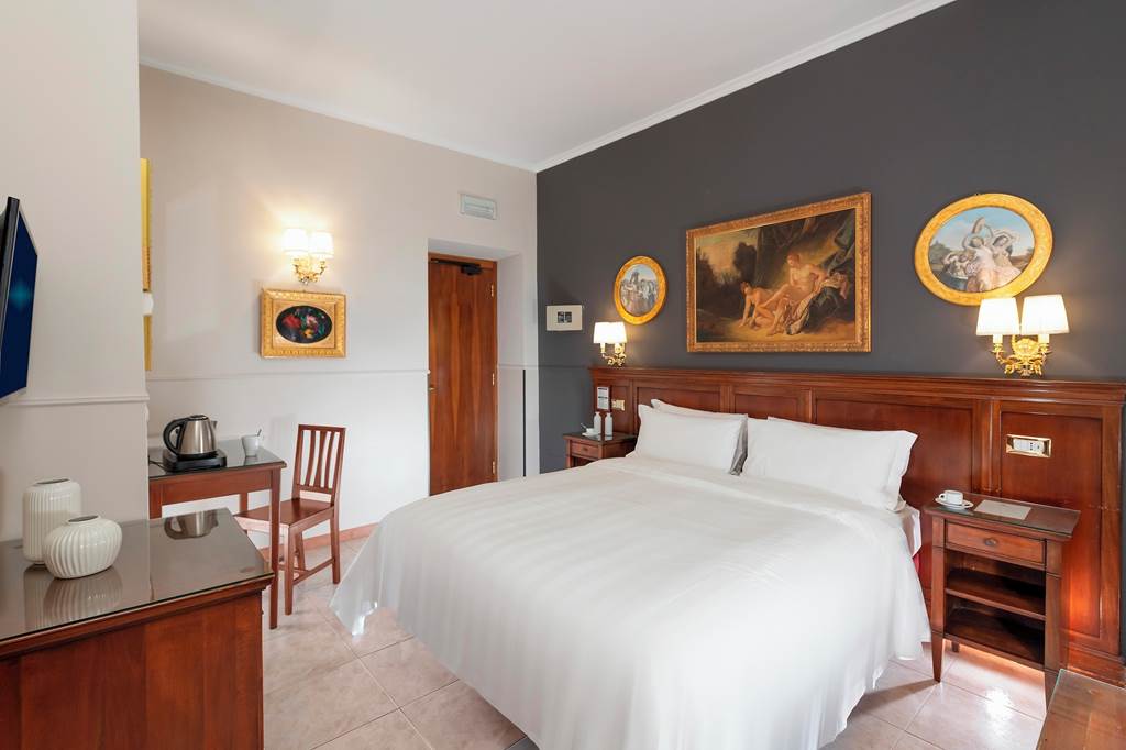 This classic hotel is just what the doctor ordered if you?re into art and culture. Des Artistes is well-connected, with a bus stop nearby for your sightseeing ease and with comfortably upholstered rooms and a great breakfast buffet on offer, you?ll be well catered for when you aren?t out and about. Whenever you choose to stay, you can enjoy unwinding too. There?s a handy bar and rooftop terrace, and located just 550m from the National Roman Museum with the Trevi Fountain and Villa Borghese also within reach, it?s time to get exploring this fascinating city.Double or Twin rooms sleep 2 adults and have bathroom containing a shower, air conditioning, hairdryer, flat screen television, fridge and safety deposit box. Room upgrade options and Sole Use rooms are also available.