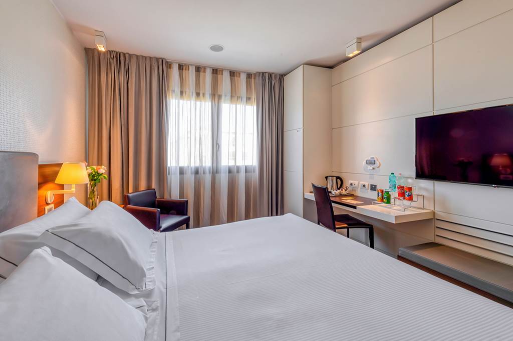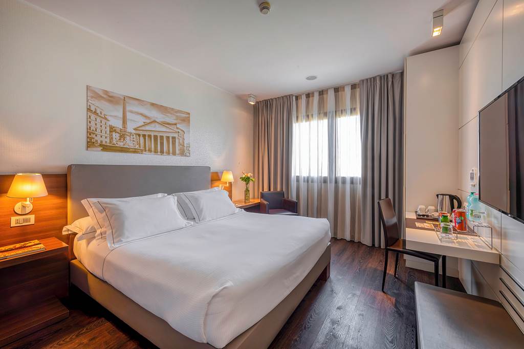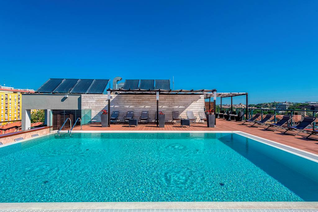 Located in the residential Marconi district, the H10 Roma Citta is a stylish hotel which combines the latest trends with a touch of Italian tradition. Rooms are contemporary and spacious plus the hotel has an outdoor pool open in the summer months and a restaurant serving excellent signature cuisine. You?ll find one of the most charming neighbourhoods, Trastevere a taxi hop away, popular for its restaurants, nightlife and cobbled streets. This out-of-town hotel provides a comfortable base to explore all that the Eternal City has to offer.Double or Twin rooms sleep up to 2 adults and have a bathroom containing a bath or shower, air conditioning, hairdryer, flat screen television, mini-bar* and safety deposit box. Double or Twin rooms for Sole Use are also available on request.
