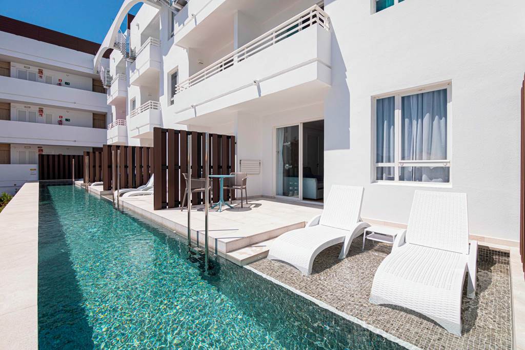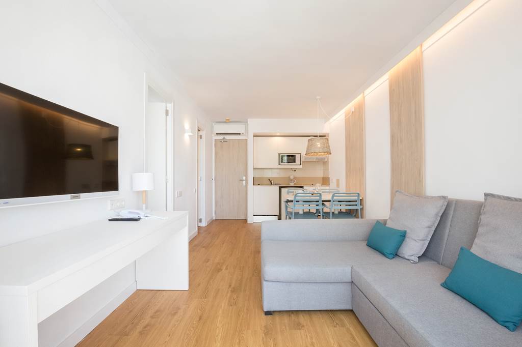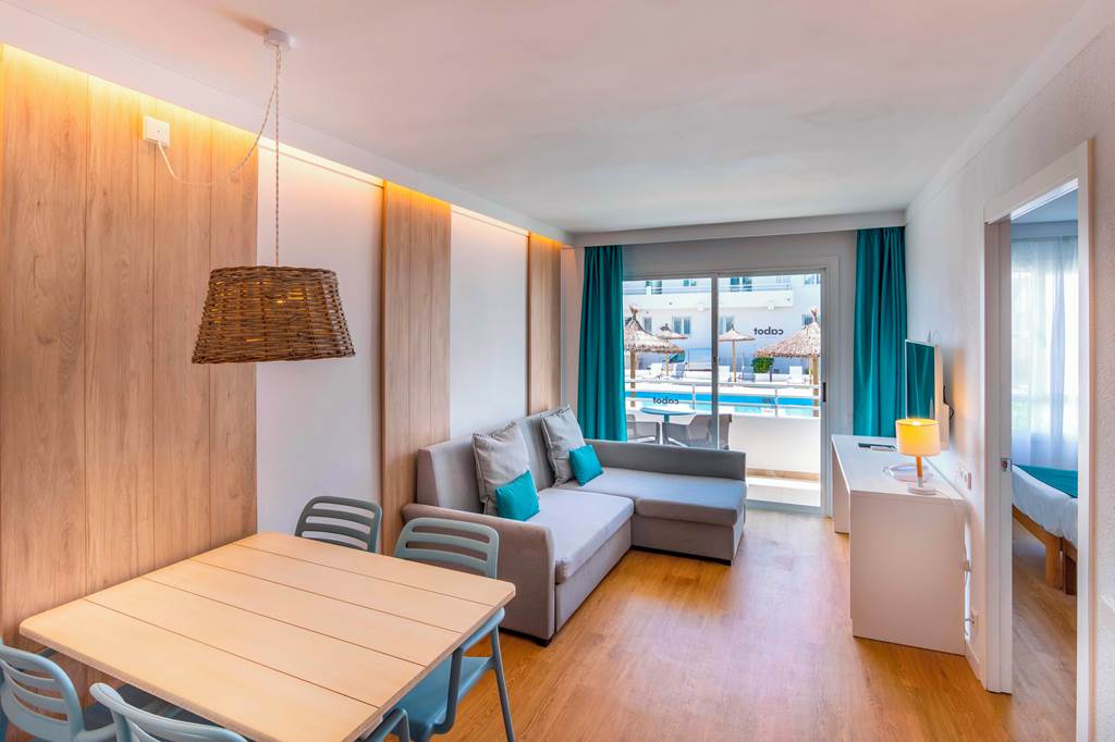 The family-friendly Hobby Club Apartments by Cabot Hotels enjoys an unbeatable location just steps from the beach, making them a top choice for beach lovers. These popular apartments feature modern, stylish décor with bright, contemporary interiors that provide a comfortable and relaxing atmosphere for families and couples alike. The chic pool area, complete with a pool bar, is perfect for unwinding, and guests can even upgrade to swim-up rooms for added convenience and luxury. With stunning sea views, especially from the rooftop terrace apartments equipped with a whirlpool, Hobby Club Apartments offer the ideal setting for a memorable seaside getaway.One Bedroom apartments sleep up to 4 adults and have bathroom containing a bath with shower attachment, air conditioning, hairdryer, television, fridge, microwave, kettle, coffee making facilities, toaster and balcony or terrace. Room upgrade options are also available.