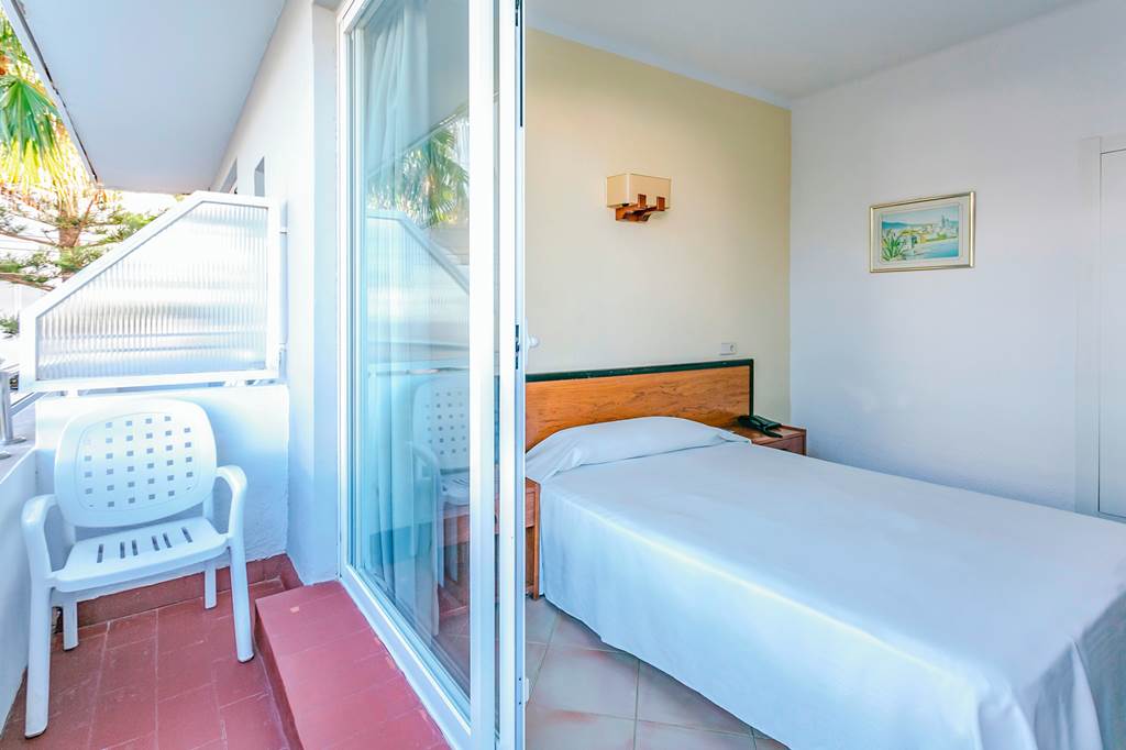 Double rooms sleep up to 3 adults have bathroom containing a bath with shower attachment, air conditioning, hairdryer, flat screen television and balcony or terrace. Double rooms with Sea View and Single rooms are also available.