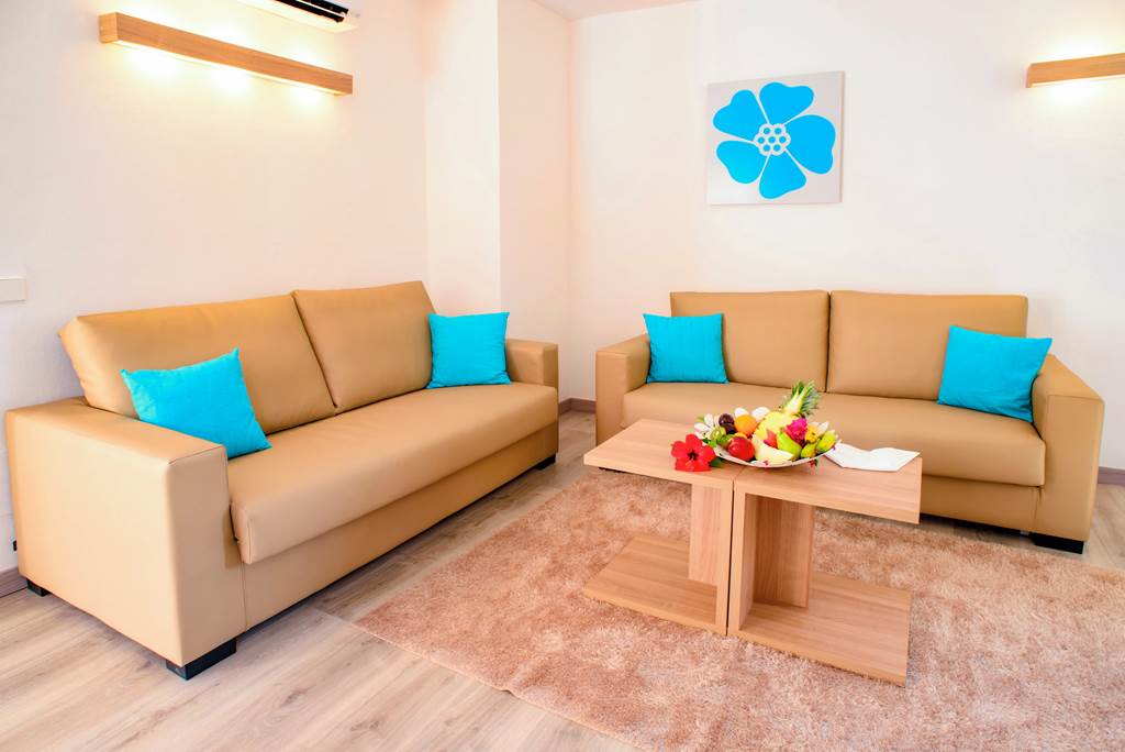 Studios sleep up to 2 adults and 1 child and have a full bathroom, air conditioning*, satellite TV, fridge and a balcony or terrace. One Bedroom apartments and Two Bedroom apartments are also available.