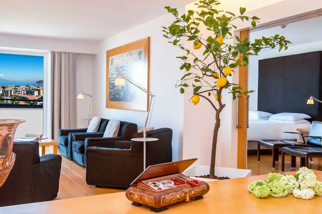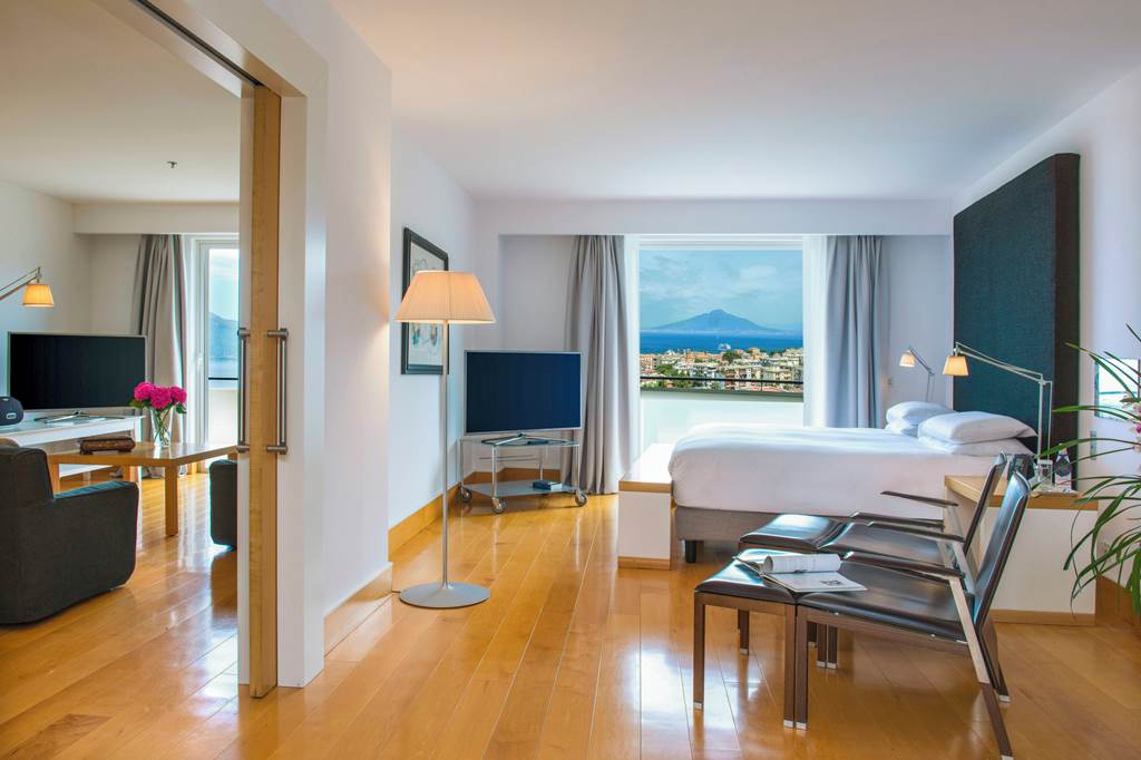 The stylish Hilton Sorrento Palace is surrounded by citrus gardens in a perfect spot with fantastic views overlooking the sea. The welcoming rooms are bright and modern featuring stunning mountain or sea views. Days can be filled lazing by the refreshing pools or exploring the historic Sorrento resort centre and evenings unwinding in the hotel?s cocktail bar. This hotel is the perfect option for a luxurious stay with the enchanting Sorrento on your doorstep.Standard Double and Twin rooms sleep up to 2 adults and have bathroom containing a bath with shower attachment, air conditioning, hairdryer, flat screen television and balcony. Room upgrade options and Sole Use rooms are also available.
