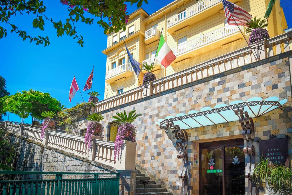 Tucked away behind Sorrento?s picture-perfect Piazza Tasso square, is the great Hotel Antiche Mura. A 19th century built hotel that has beautifully combined elegant traditional décor with modern comforts to create such splendid surroundings. Nestled within the hotel?s green garden is the pool, where relaxation is easy with its lemon and orange tree surroundings. Breakfast can be enjoyed in the hotel?s breakfast room with its hand painted tiles and Murano glass décor or outdoors, whilst admiring the ancient walls of the town. If you fancy a change of scenery but don?t want to leave the hotel, head to the front terrace where guests can admire the view of Piazza Tasso. With Sorrento station within close proximity, day trips to neighbouring resorts come easy.Standard Double and Twin rooms without balcony sleep up to 2 adults and have bathroom with bath or shower, air conditioning, hairdryer and flat screen television. Comfort Double and Twin rooms with balcony, Junior suites, Suites and Sole Use rooms are also available.