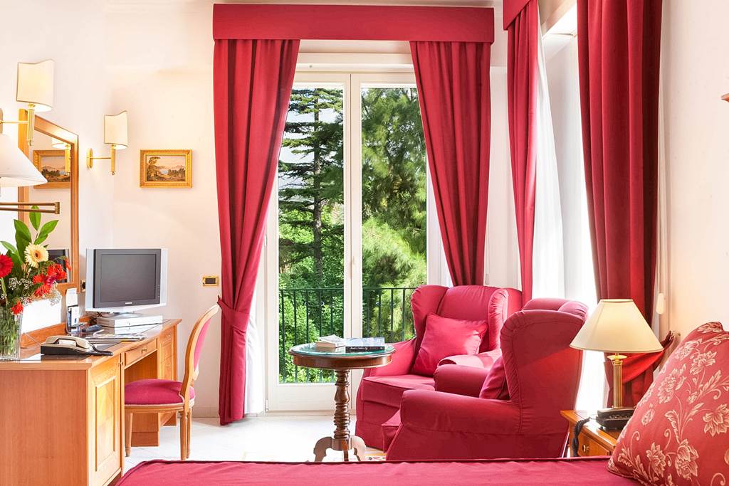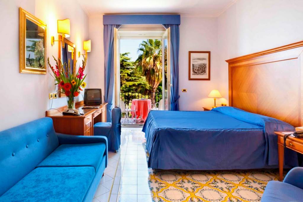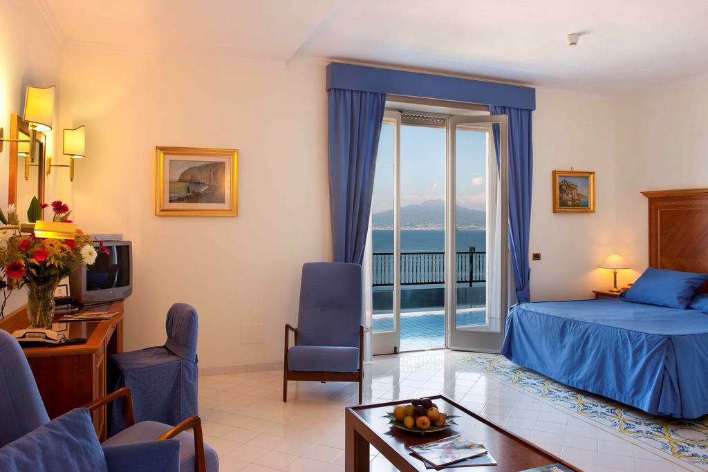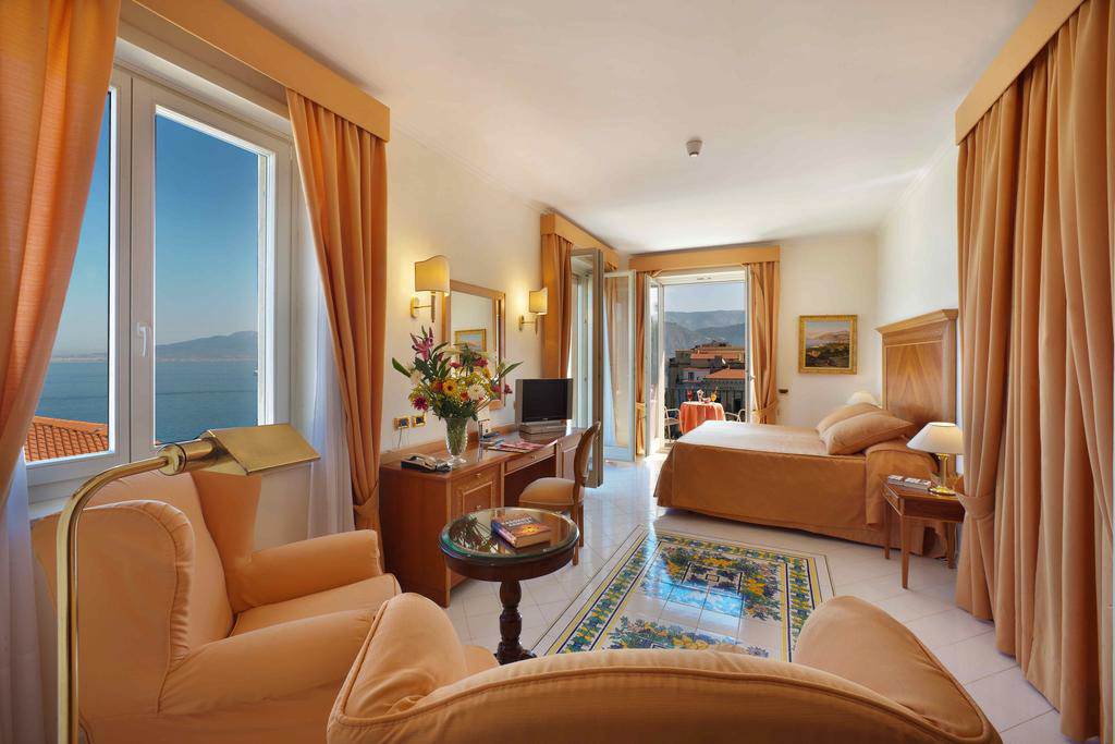 With a fantastic central location, the Hotel Continental puts you in the heart of Sorrento and delivers on views. Enjoy days relaxing around its large pool and spacious terrace full of lemon trees. Nights can be enjoyed in the stylish piano bar Caruso or venturing out to the bustle of Piazza Tasso a short walk away. Offering a refined Italian style throughout, this is a great spot for relaxing and exploring all that Sorrento and the surrounding area has to offer.Double or Twin rooms sleep 2 adults and have bathroom containing a bath with shower attachment, air conditioning (01 Apr-11 Nov), hairdryer, minibar*, coffee making facilities, flat screen television, safety deposit box and balcony. Room upgrade options are also available.