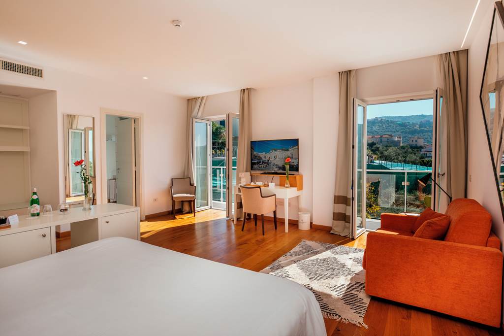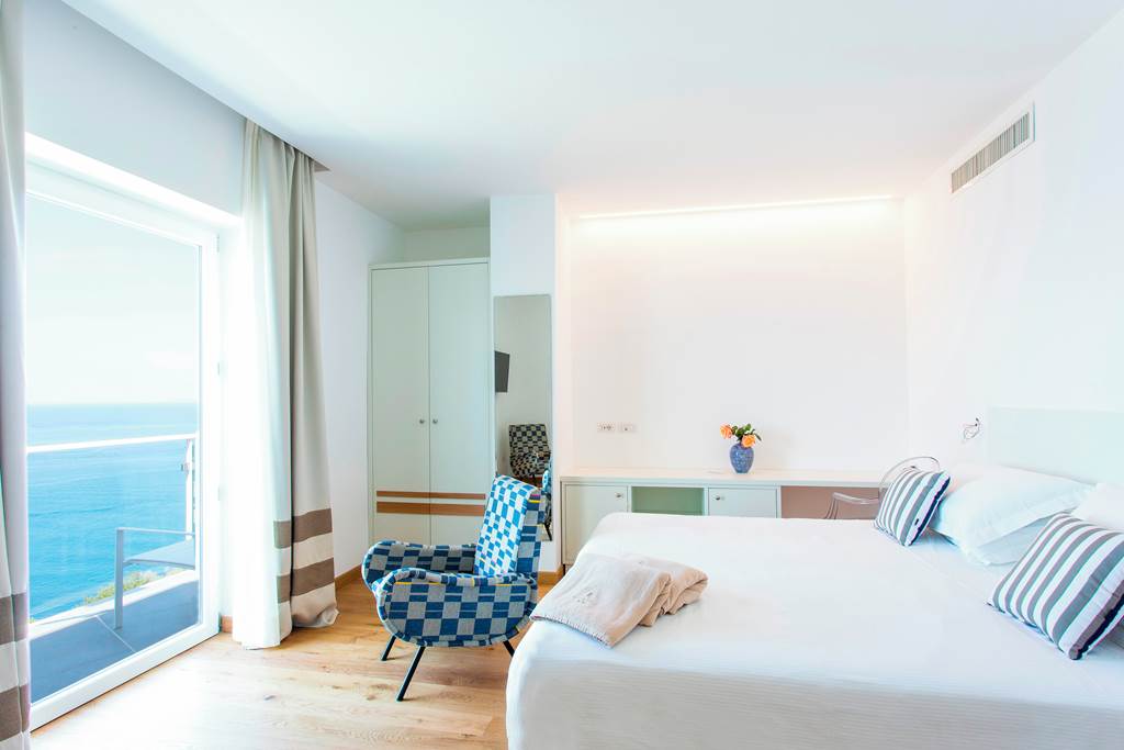 Standard Double rooms have bathroom containing a bath or shower, air-conditioning, hairdryer, flat screen television and safety deposit box. Superior Double Sea View rooms and Junior Suite with Sea View are also available.