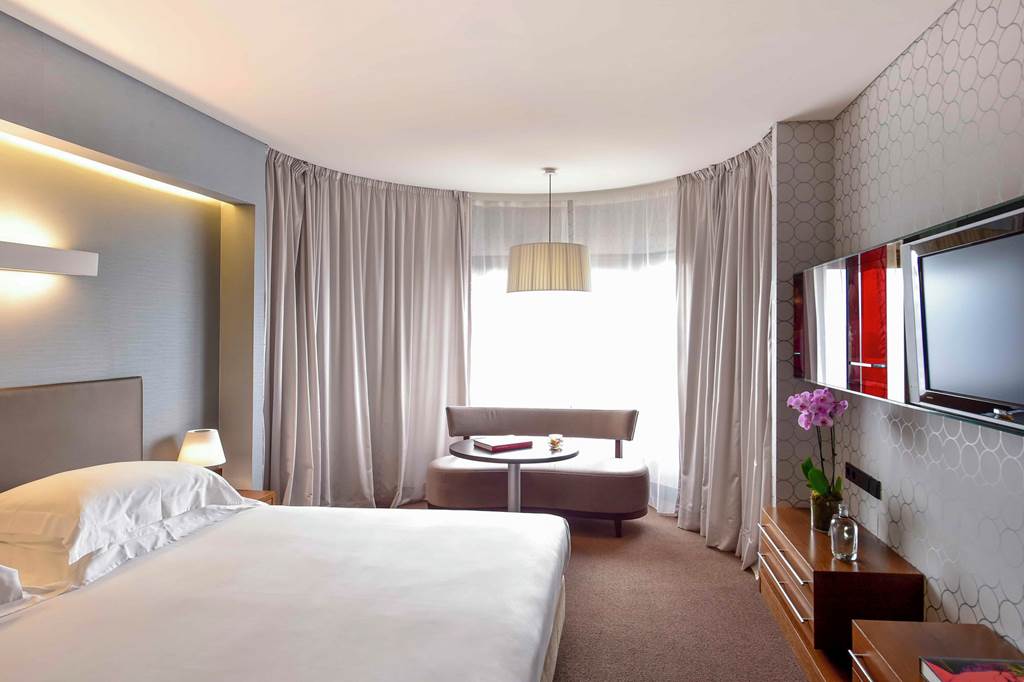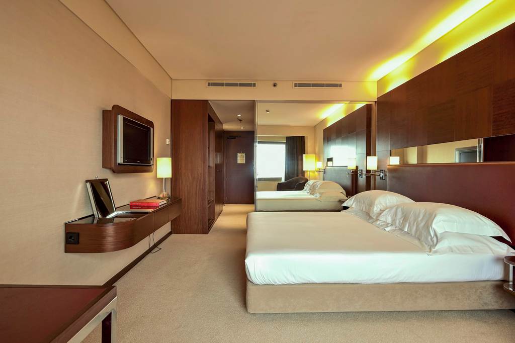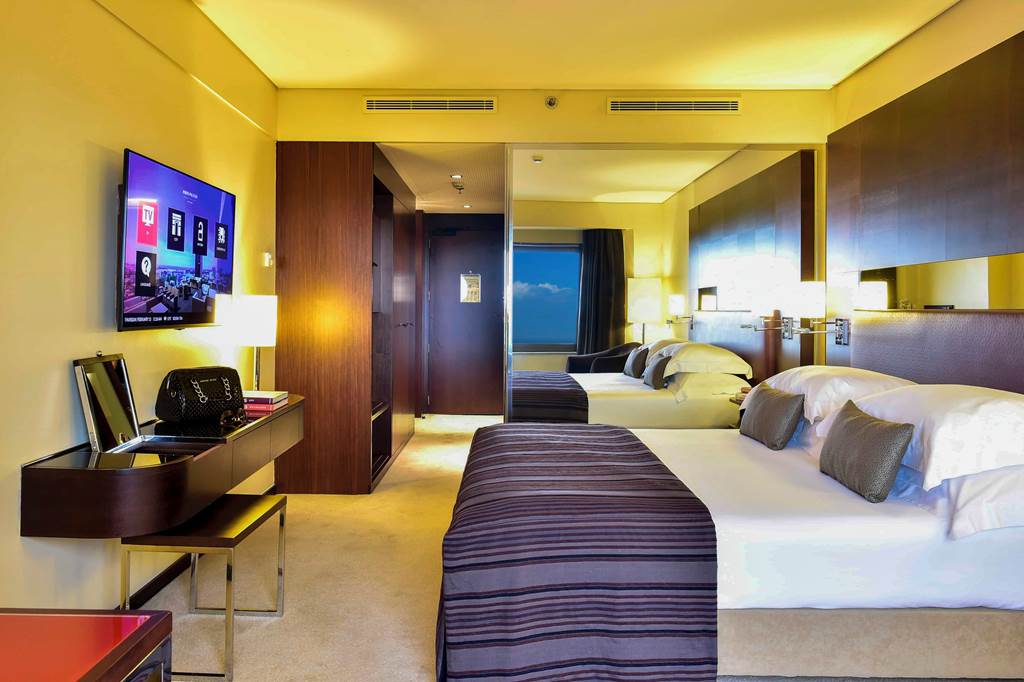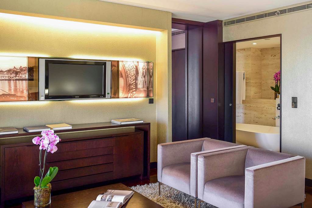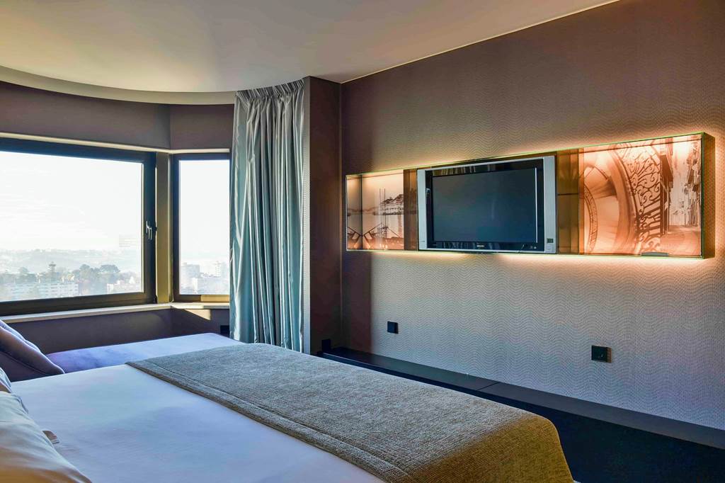 The Porto Palácio Hotel towers above the city's skyline offering sophistication and comfort. With its striking contemporary architecture honours Porto's rich cultural heritage. From the moment you step into the colourful lobby the attention to detail is apparent. The hotel's rooftop restaurant offers panoramic 360 degree views of Porto's stunning landscapes and it's modern and comfortable rooms are sure to guarantee an enjoyable stay. Located a short walk from the nearest metro station exploring Porto is at your fingertips. The on-site world class spa offers the height of relaxation after a long day of exploring the colourful city of Porto.