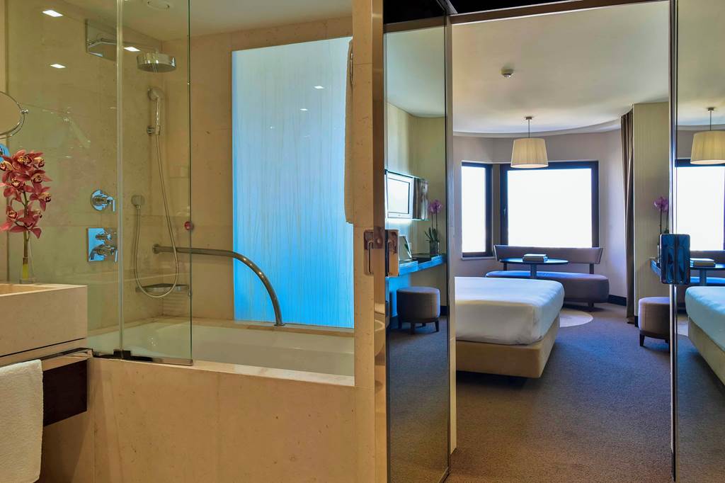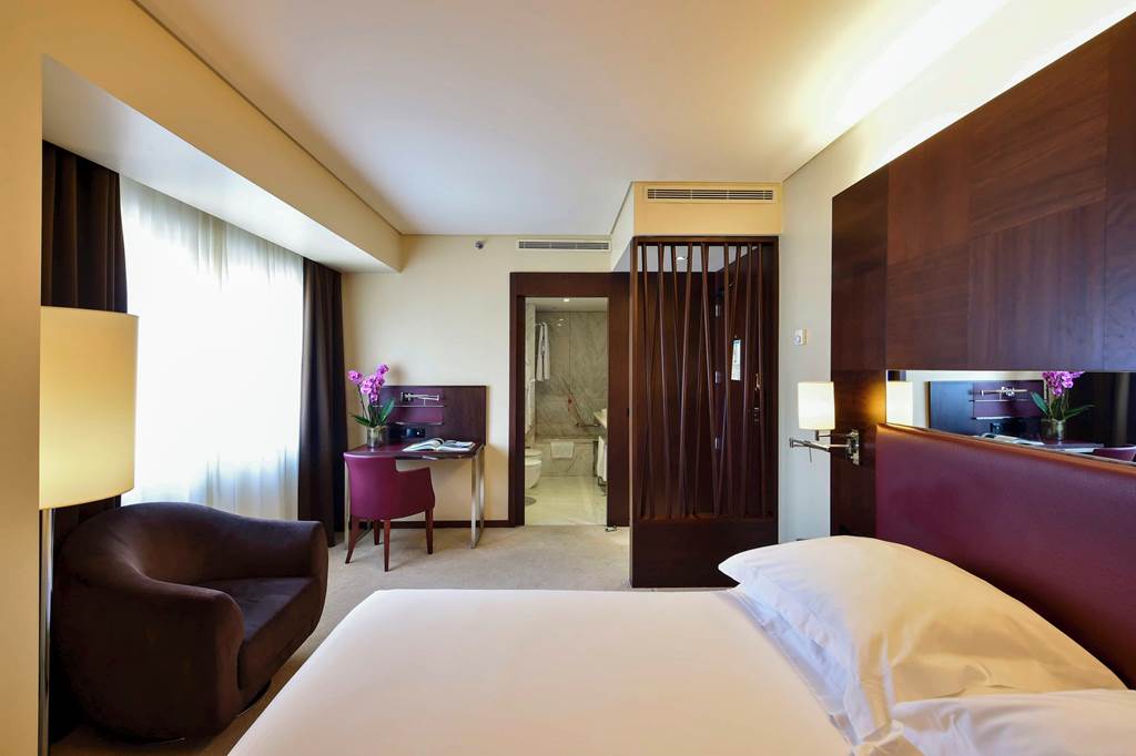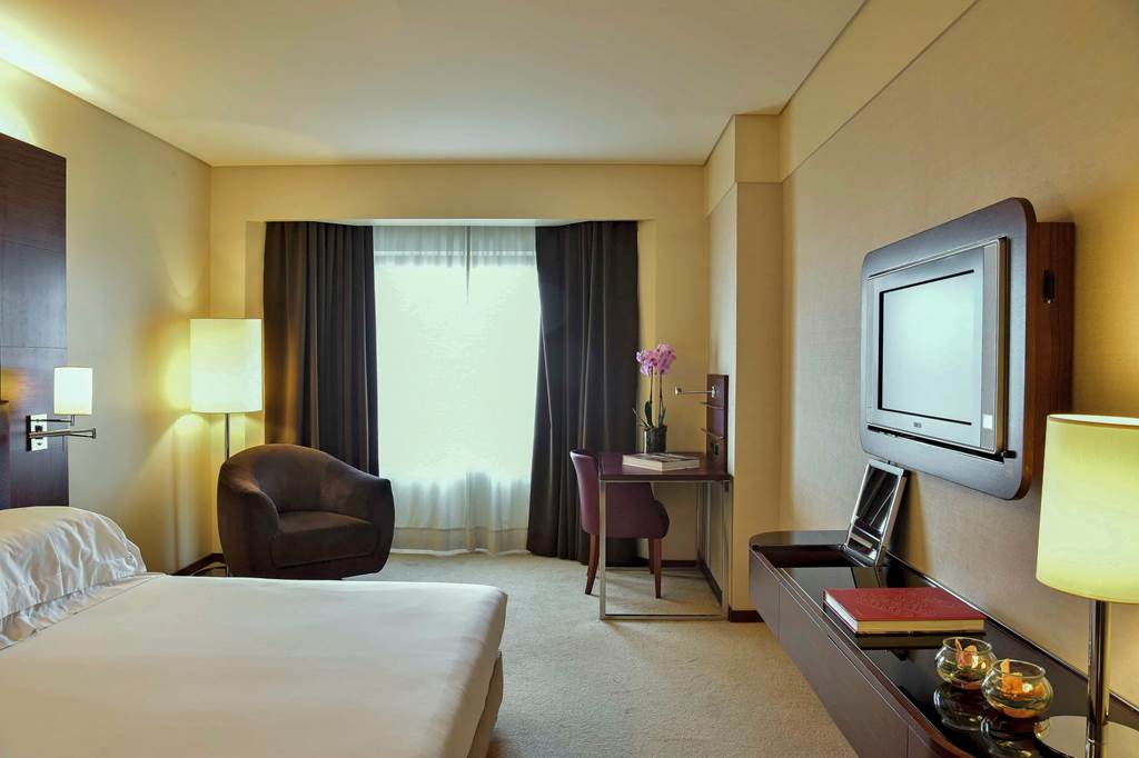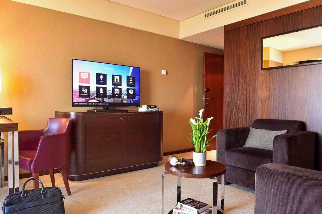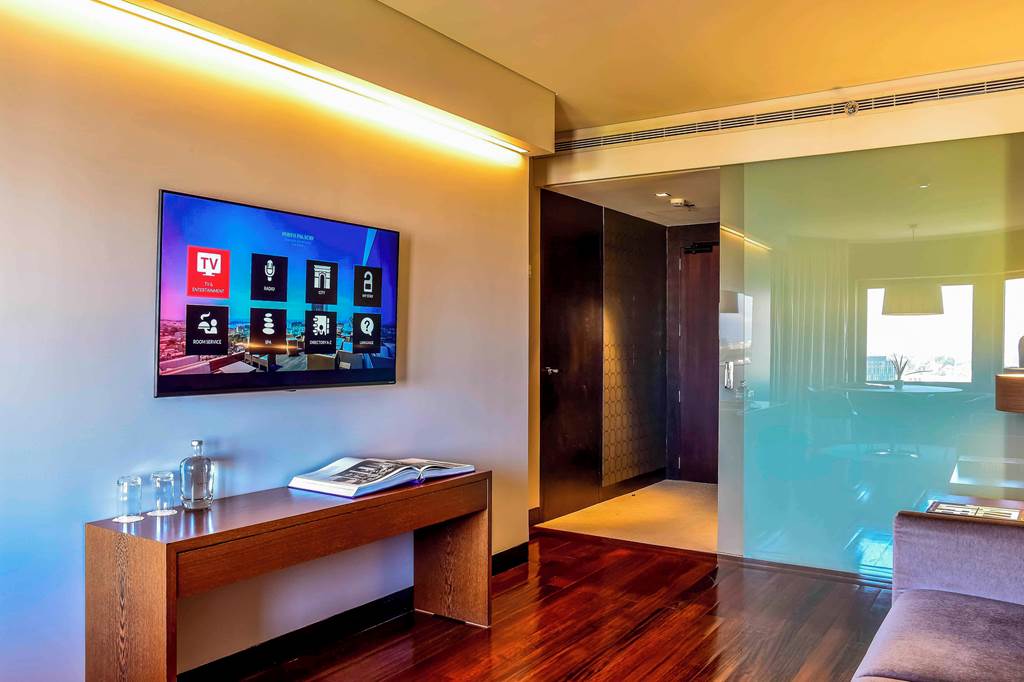 The Porto Palácio Hotel towers above the city's skyline offering sophistication and comfort. With its striking contemporary architecture honours Porto's rich cultural heritage. From the moment you step into the colourful lobby the attention to detail is apparent. The hotel's rooftop restaurant offers panoramic 360 degree views of Porto's stunning landscapes and it's modern and comfortable rooms are sure to guarantee an enjoyable stay. Located a short walk from the nearest metro station exploring Porto is at your fingertips. The on-site world class spa offers the height of relaxation after a long day of exploring the colourful city of Porto.