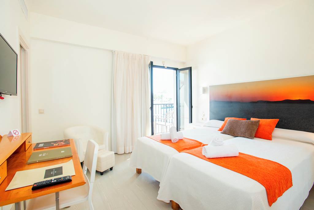 Centrally located in San Antonio, here you?ll get a great value base. Pair chilled poolside days with bass-filled nights out in San Antonio ? you?ll be really close to the bars and clubs, after all. Pick your board basis, lounge by the pool or take advantage of the great on-site cycling facilities to explore the local area.Double and Twin rooms sleep up to 2 adults and have a bathroom containing a bath or shower, air conditioning and flat screen TV. Quadruple rooms have the same facilities as the Double and Twin rooms but are larger and some rooms feature a balcony. Premium rooms sleep up to 2 adults and have the same facilities as a Double and Twin rooms but are larger. Premium rooms have been recently refurbished providing you with modern and stylish accommodation, easily of a 4* standard. Double and Twin rooms for Sole use, Bed and Breakfast, Half Board and Full Board are also available.