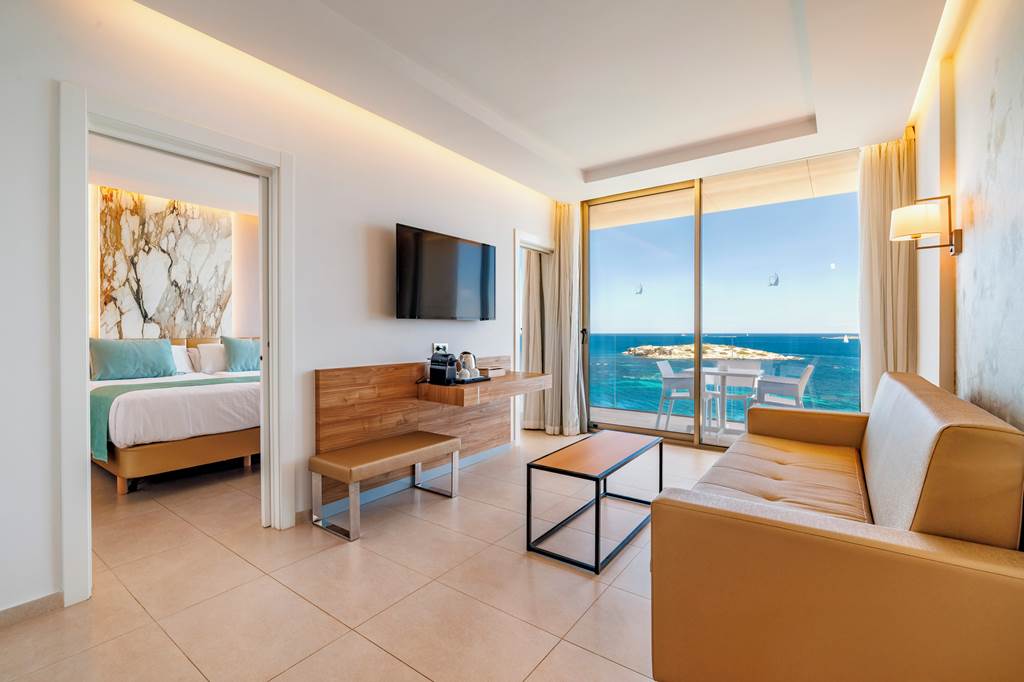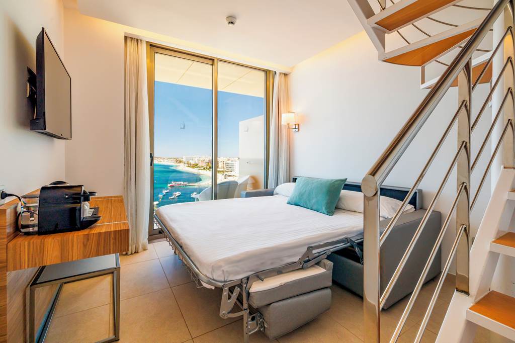 A harmonious matching of design features, luxury amenities and trendy restaurants await at Torre Del Mar. Embrace the tranquil tempo by the outdoor pool or admire the panoramas from the roof terrace. There?s a fantastic spa too! It?s hit the jackpot when it comes to location, with direct access to Sa Punta Beach. A boat service to Ibiza Town and the island of Formentera stops here, so it?s easy to explore further afield. You can snooze in style in the modern rooms, many of which boast sea or urban views. The regular evening entertainment gets a tick from us!Twin rooms sleep up to 2 adults and have a bathroom with shower, hairdryer, air conditioning, flat screen television, mini-bar* and balcony or terrace. Twin Sea View rooms, Superior Side Sea View rooms, Twin rooms for Sole Use and Half Board are also available. Superior rooms have the same facilities as the twin room plus a mini-fridge with water and soft drinks on arrival.
