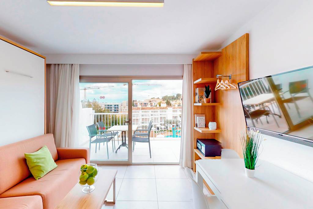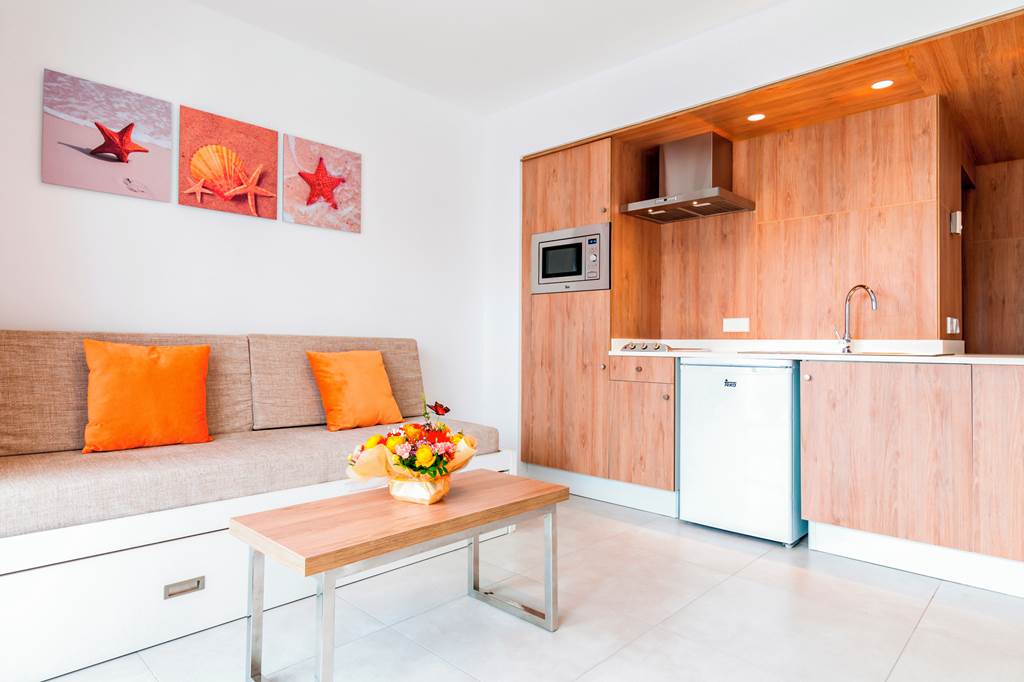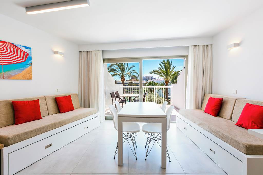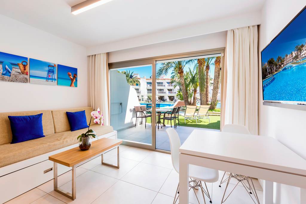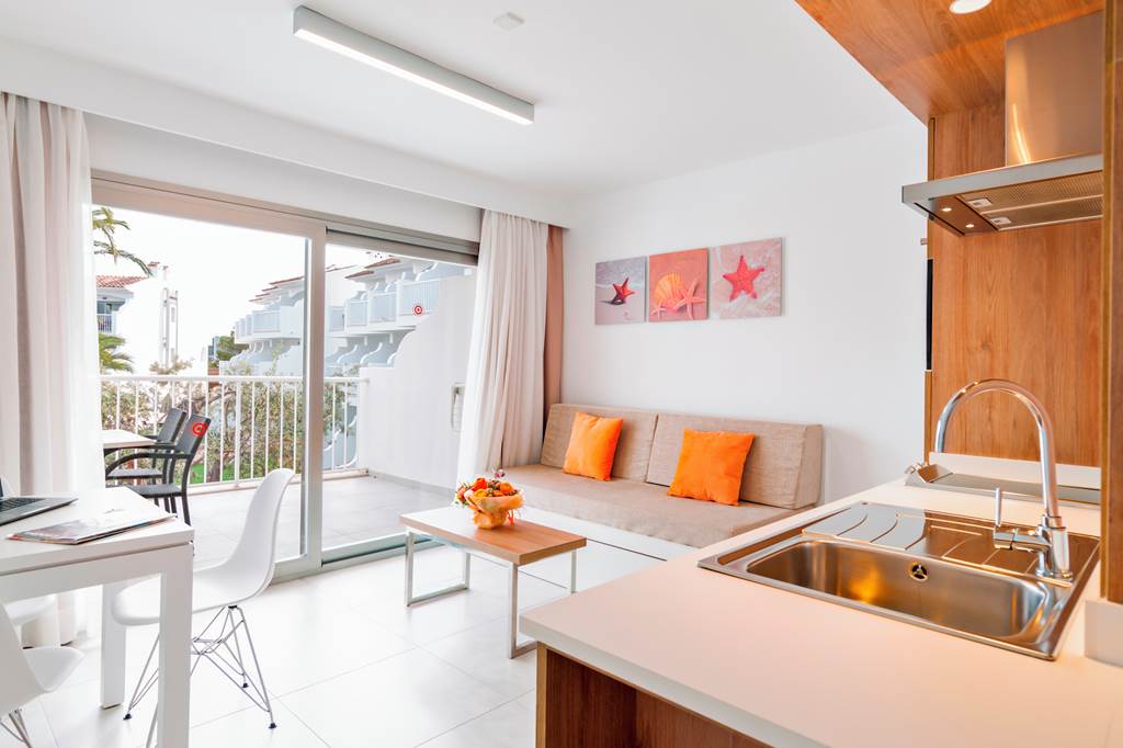 Aparthotel Playa Cas Saboners is a friendly complex with well-equipped apartments and a great location near to the beach, in a quieter area of Palma Nova. These popular apartments have a fantastic pool scene, along with plenty of activities and entertainment for some fun in the sun. If you are seeking a more active holiday, Aparthotel Playa Cas Saboners is well-equipped for cyclists wishing to explore Majorca on two wheels. Back in the hotel, the Premium One Bedroom apartments benefit from a spacious, ground floor terrace where you can enjoy lounging in the Majorcan sunshine. Plus, opt for the half board package and enjoy modern dining facilities and great cuisine!Studio sleep up to 2 adults and have bathroom containing a shower, air conditioning, hairdryer, flat screen television, fridge, kettle, microwave, toaster and balcony. One Bedroom apartments sleeping up to 4 adults, Family apartments sleeping up to 5 adults and Premium One Bedroom apartments - Ground Floor sleeping up to 4 adults are also available. Premium One Bedroom apartments - Ground Floor have free Wi-Fi.