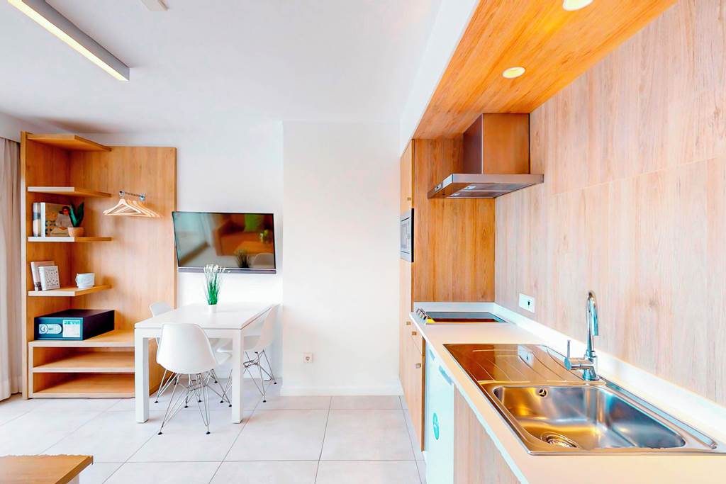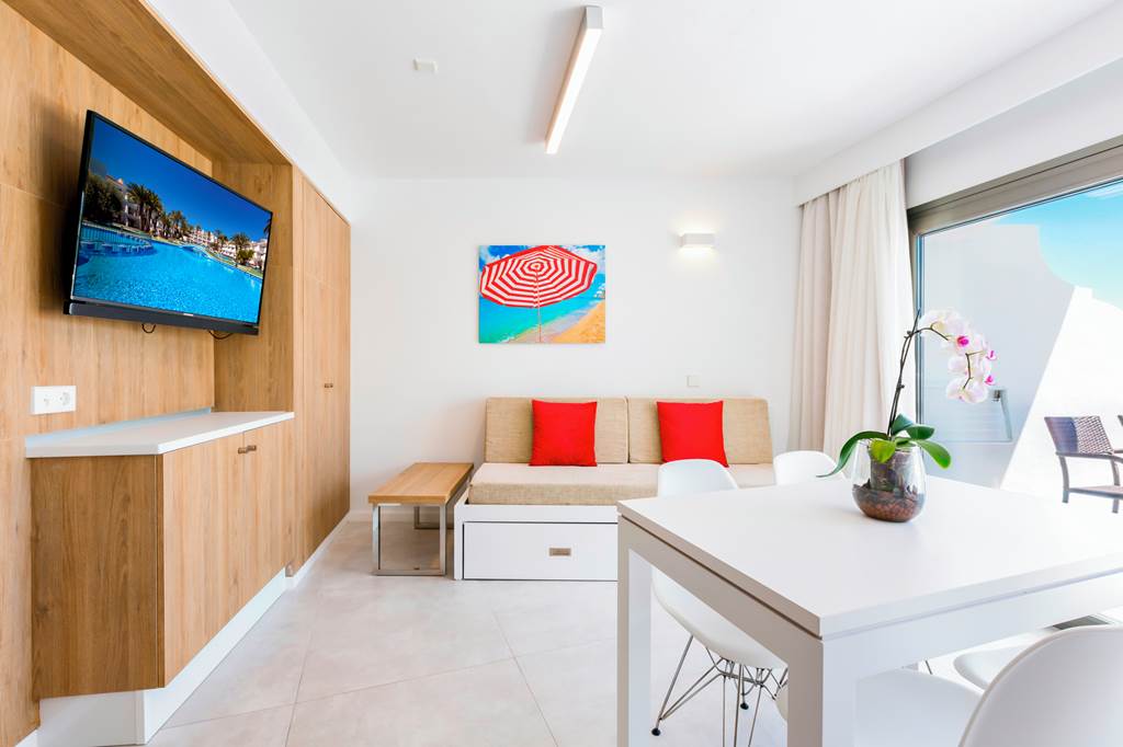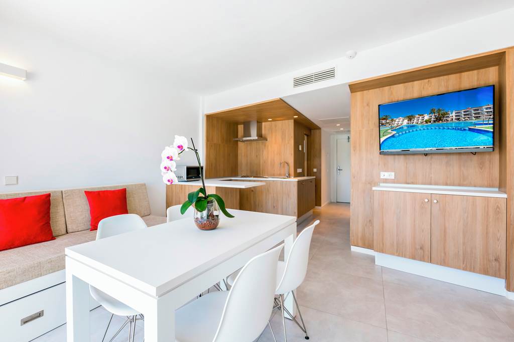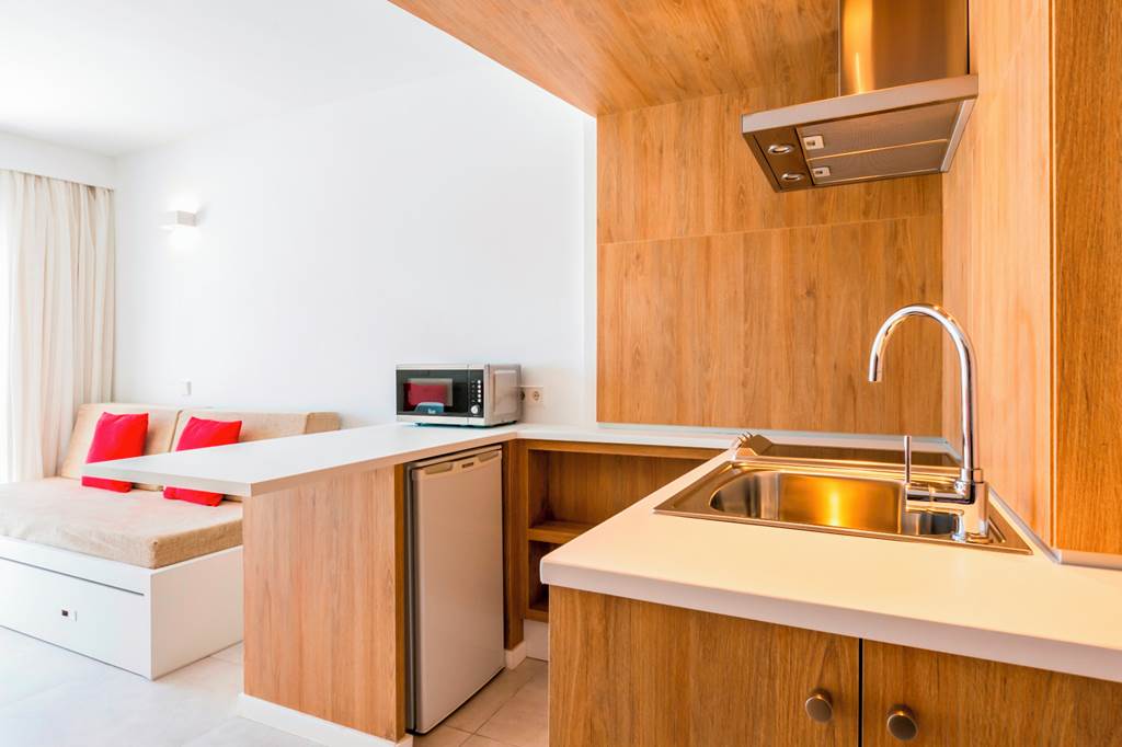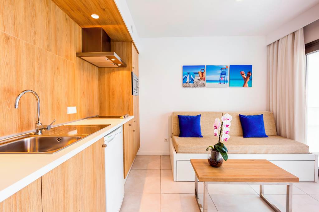 Aparthotel Playa Cas Saboners is a friendly complex with well-equipped apartments and a great location near to the beach, in a quieter area of Palma Nova. These popular apartments have a fantastic pool scene, along with plenty of activities and entertainment for some fun in the sun. If you are seeking a more active holiday, Aparthotel Playa Cas Saboners is well-equipped for cyclists wishing to explore Majorca on two wheels. Back in the hotel, the Premium One Bedroom apartments benefit from a spacious, ground floor terrace where you can enjoy lounging in the Majorcan sunshine. Plus, opt for the half board package and enjoy modern dining facilities and great cuisine!Studio sleep up to 2 adults and have bathroom containing a shower, air conditioning, hairdryer, flat screen television, fridge, kettle, microwave, toaster and balcony. One Bedroom apartments sleeping up to 4 adults, Family apartments sleeping up to 5 adults and Premium One Bedroom apartments - Ground Floor sleeping up to 4 adults are also available. Premium One Bedroom apartments - Ground Floor have free Wi-Fi.