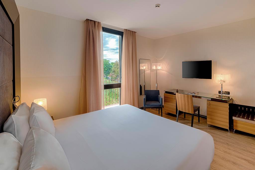 Located in the heart of Siena and only a stroll from the Piazza del Campo showcasing its wealth of historic landmarks, and the impressive Siena Duomo, the NH Siena is in a fantastic location to delve in to all that this surprising city has to offer. Discover hidden restaurants whilst ambling along the cobbled streets of this 'city on the hill', and explore further afield to sample Tuscan flavours and delicious wines in the surrounding countryside. With crisp bright rooms this modern hotel offers a truly wonderful base for a great break.Standard Double rooms sleep up to 2 adults and have bathroom containing a bath with shower attachment or shower, hairdryer, air conditioning, flat screen television, mini bar* and safety deposit box. Room upgrade options are also available.