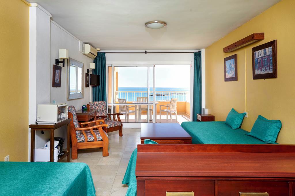 When it comes to beachfront locations, you can?t get much closer than the Jabega Apartments, which are just across the promenade from a long sandy beach. The rooms are equipped with basic cooking facilities ? perfect for those wanting to go Self Catering on their holiday. If you fancy a drink downstairs, there?s a bar serving a range of international tipples along with daily evening entertainment. The best bit? It?s great value! The resort centre of Fuengirola is just a hop skip and a jump away too, boasting plenty of shops, bars and restaurants.Studios sleep up to 3 adults and have a full bathroom, hairdryer, air conditioning, satellite TV, free Wi-Fi, kitchenette with small oven, fridge, coffeemaker and toaster, and a balcony.