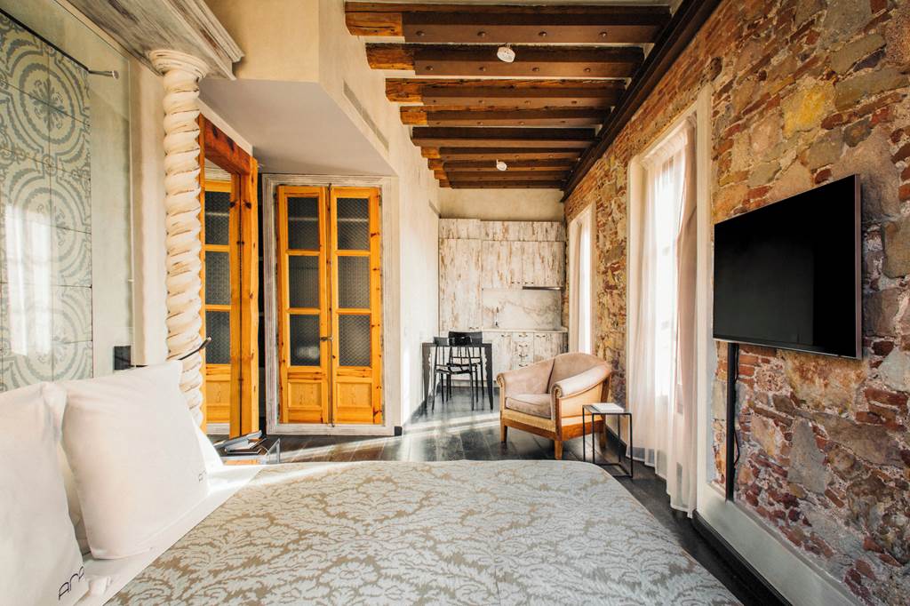 In the heart of the Gothic quarter this beautifully restored building offers up luxury apartments with an hotel feel. Perfectly boutique, the stylishly decorated spaces draw on the building?s history and lots of modern touches for comfort and relaxation. Exposed stone and beams and bathrooms covered in marble are wonderfully knit together to provide your own enclosed space to recharge, so you can venture out in the old town streets and visit the architectural marvels of Sagrada Familia and Casa Batlló. Never far from cool bars and Andalucian tapas you can nevertheless whip up an intimate dinner in the bijou kitchenette, go on treat yourself for your next Barcelona city break!Standard apartments sleep up to 2 adults and have bathroom containing a shower or bath, bathrobe and slippers, air conditioning, safety deposit box*, minibar*, coffee making facilities and flat screen television. Room upgrade options are also available.