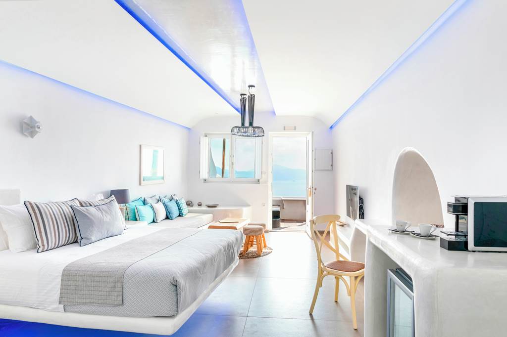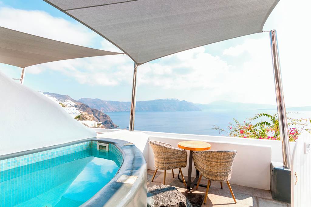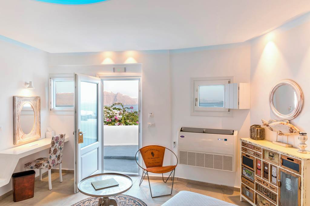 Positioned in the heart of Oia?s coastal area this boutique hotel is perfect for a peaceful retreat. Unwind on your private veranda with a delightful breakfast whilst absorbing the sunrise over the breath-taking Caldera. This hotel is embraced by the traditional blue dome buildings and gourmet restaurants to suit every palate.