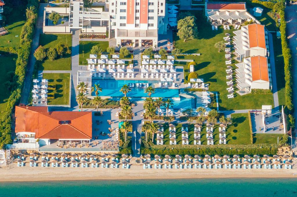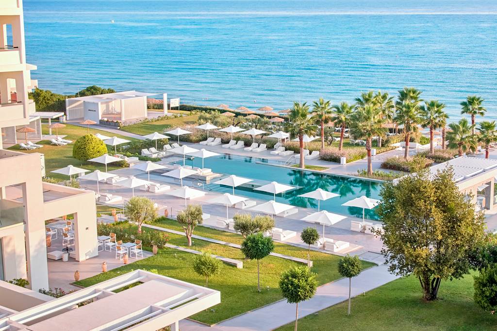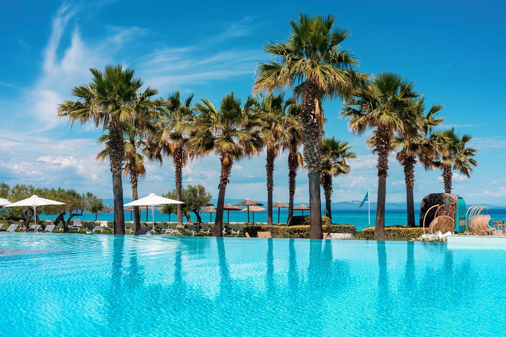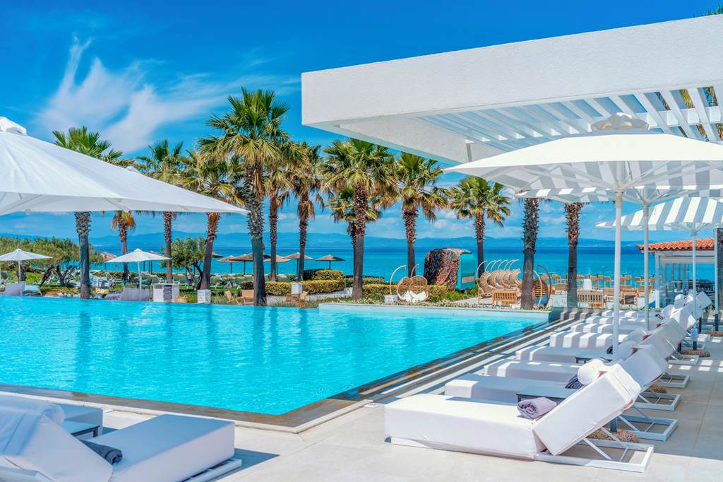 When it comes to grown-up getaways, this adults-only spot nails it. Kassandra's beach clubs, sunset bars and boutique finds are all close by, while pool days bring a choice between laid-back or lively - both with palm-framed cabanas made for lingering. The vibrant main pool - complete with music and a buzzing atmosphere - is even heated in the shoulder months, while the secret pool stays cool, calm and blissfully tucked away.