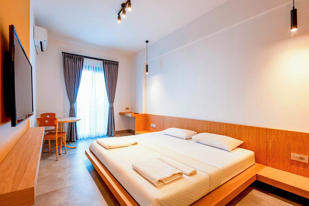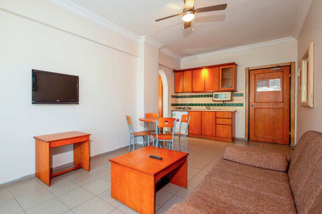 One bedroom apartments sleep up to 4 adults and have bathroom containing a bath, air conditioning*, hairdryer, television, Wi-Fi*, fridge, kettle, double cooking rings, microwave, toaster and balcony or terrace.