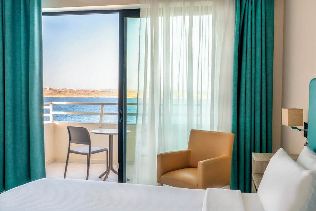 Set on the sparkling shores of Marfa Bay, the Riviera Spa Resort - Adults Only combines a seafront setting with warm Maltese charm. Unwind by one of the two pools with sweeping sea views, or indulge in the choice of three restaurants and bars serving flavours from around the world. For a day on the sand, Malta?s largest Blue Flag beach ? Mellieha Bay ? is just a short drive away.Standard Double and Twin rooms sleep up to 3 adults and have bathroom containing a bath with shower attachment, air conditioning (May-Sep), hairdryer, flat screen television, fridge and balcony. Standard Double and Twin rooms with Pool View, Standard Double and Twin rooms with Sea View and Standard Double rooms for Sole Use are also available.
