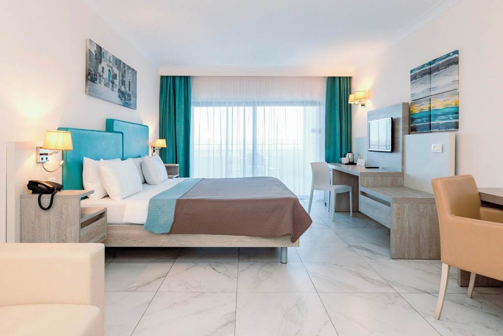 Standard Double and Twin rooms sleep up to 3 adults and have bathroom containing a bath with shower attachment, air conditioning (May-Sep), hairdryer, flat screen television, fridge and balcony. Standard Double and Twin rooms with Pool View, Standard Double and Twin rooms with Sea View and Standard Double rooms for Sole Use are also available.