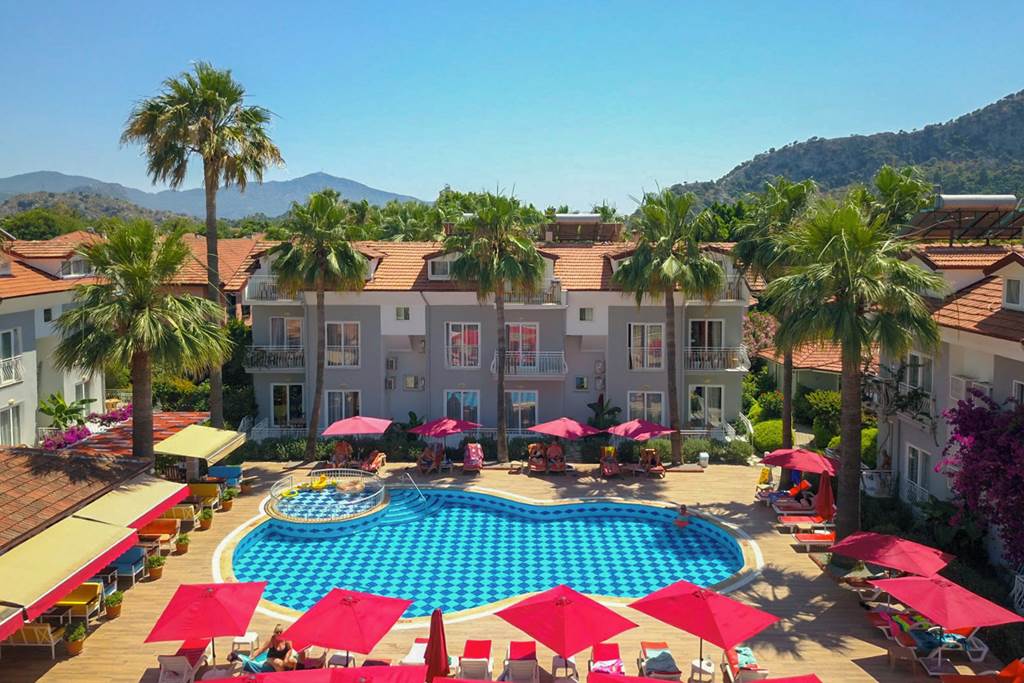 The palm-lined pool area and stunning mountain views make Villa Dolunay Aparthotel the perfect place to relax and unwind. The friendly atmosphere really sets the character of this tranquil complex as you dine al fresco at the poolside restaurant. You?ll be ideally located here, close to the Dalyan river, famous for the renowned revitalising mud baths and Loggerhead turtles. If you fancy dining out or something livelier, you can find many bars and restaurants just a short walk away. Villa Dolunay Aparthotel is the ideal choice for couples looking for a low-key and peaceful Turkish break.