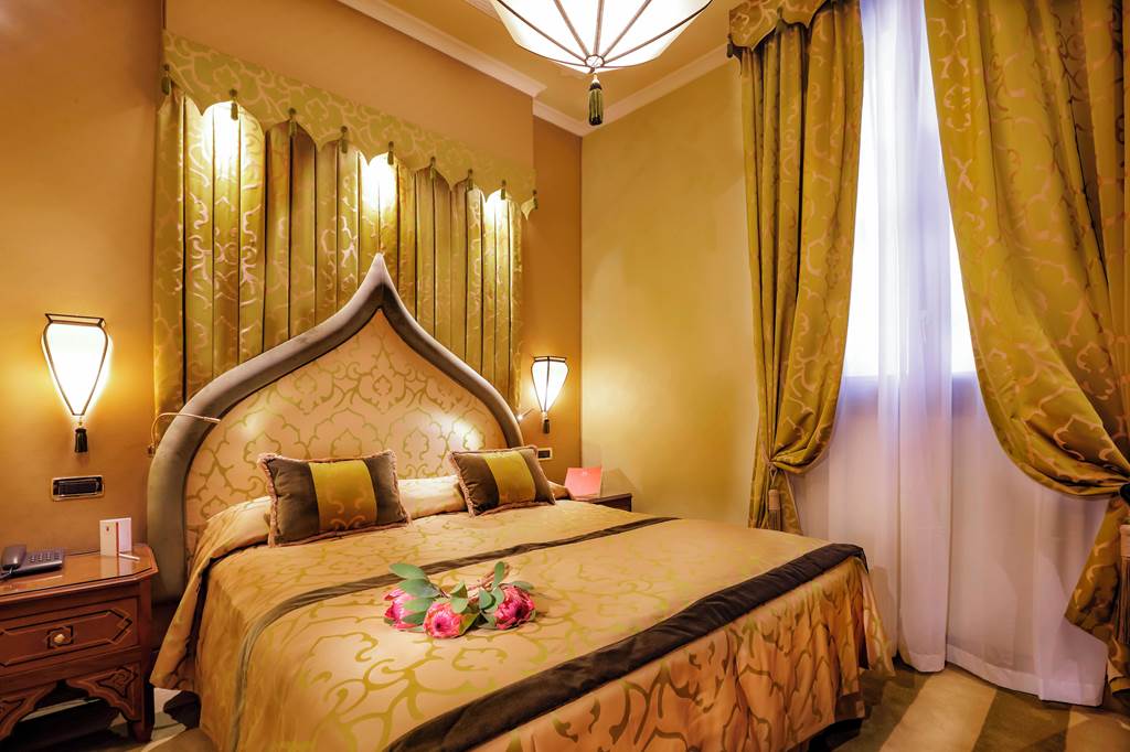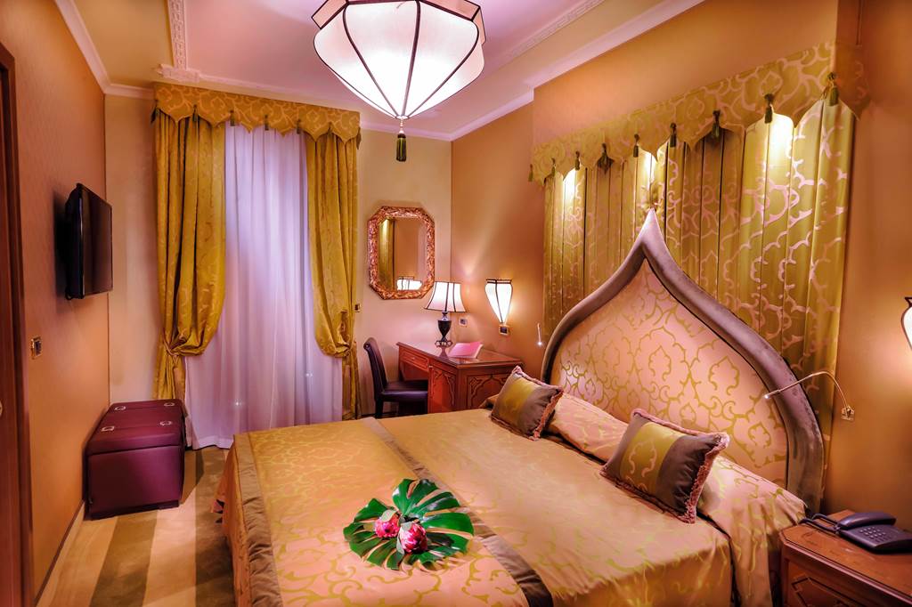 The charming hotel Ai Mori d'Oriente is located in the picturesque Cannareggio quarter of Venice, with its cobbled streets and hidden courtyards, yet still within easy reach of the famous sights. Situated in a 15th century palace with a Moorish-inspired interior, this is an ideal place to discover the romantic charm of this enchanting city.Double rooms sleep up to 2 adults and have bathroom containing a bath or shower, air conditioning, hairdryer and flat screen television.