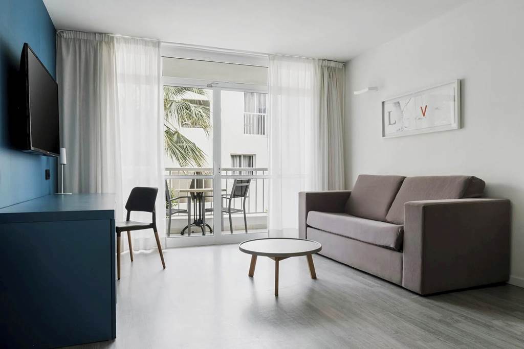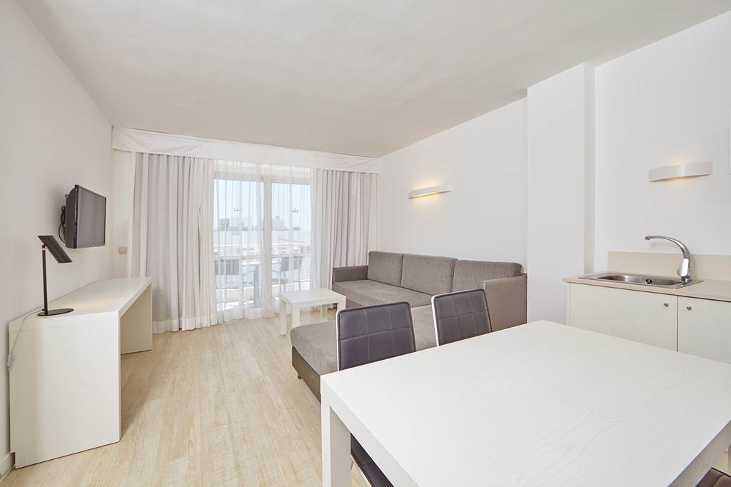One bedroom apartments sleep up to 4 adults and have separate twin bedroom, living area flat screen TV and 2 sofa beds, kitchenette with fridge, kettle and toaster, full bathroom, hairdryer and balcony or terrace. Room upgrade options are also available.