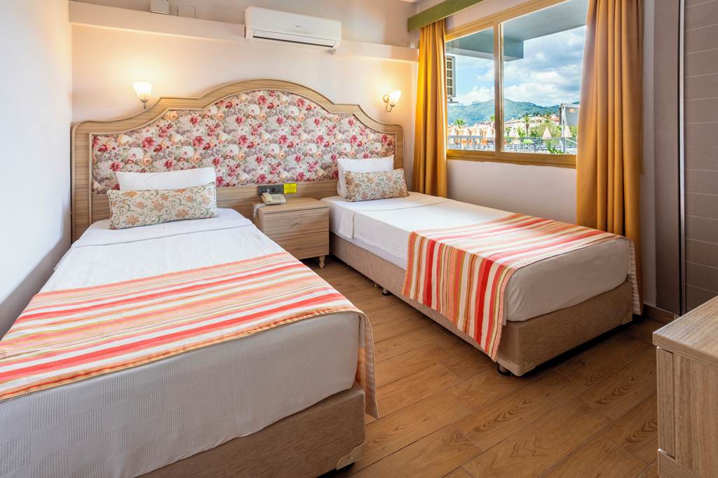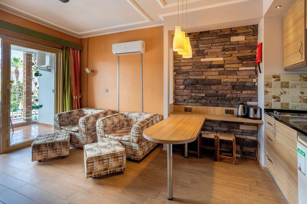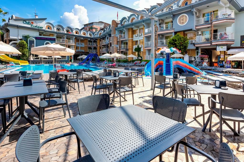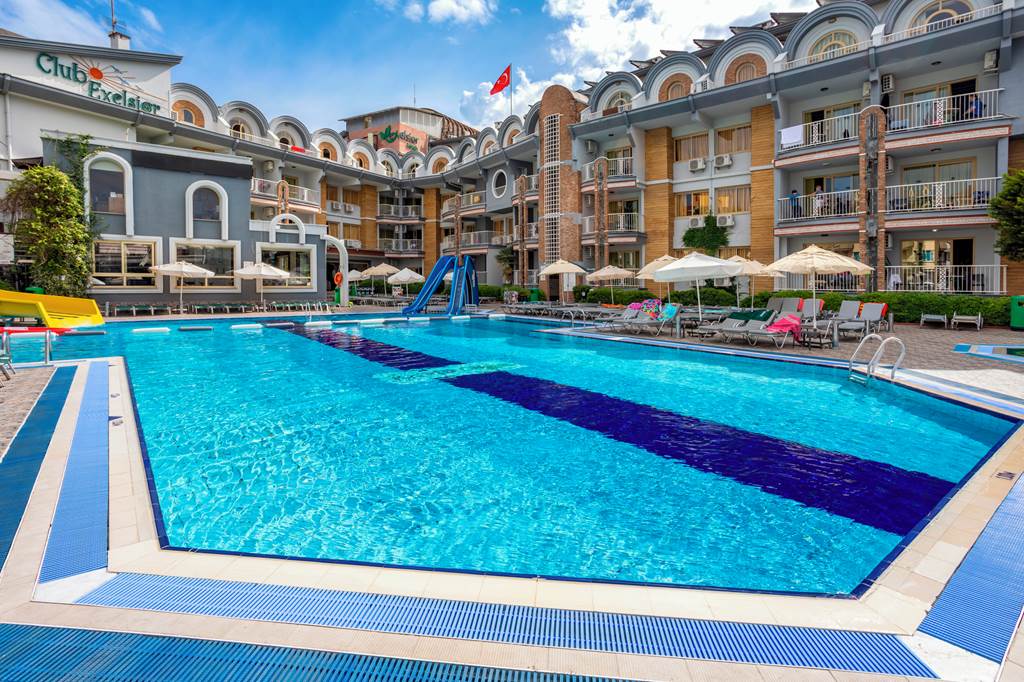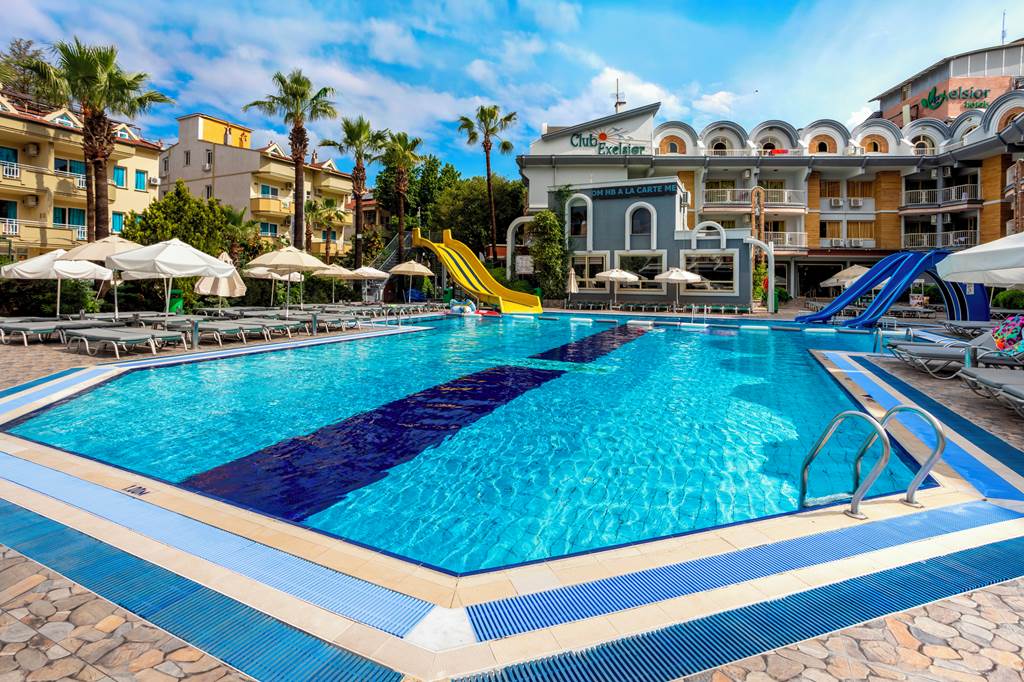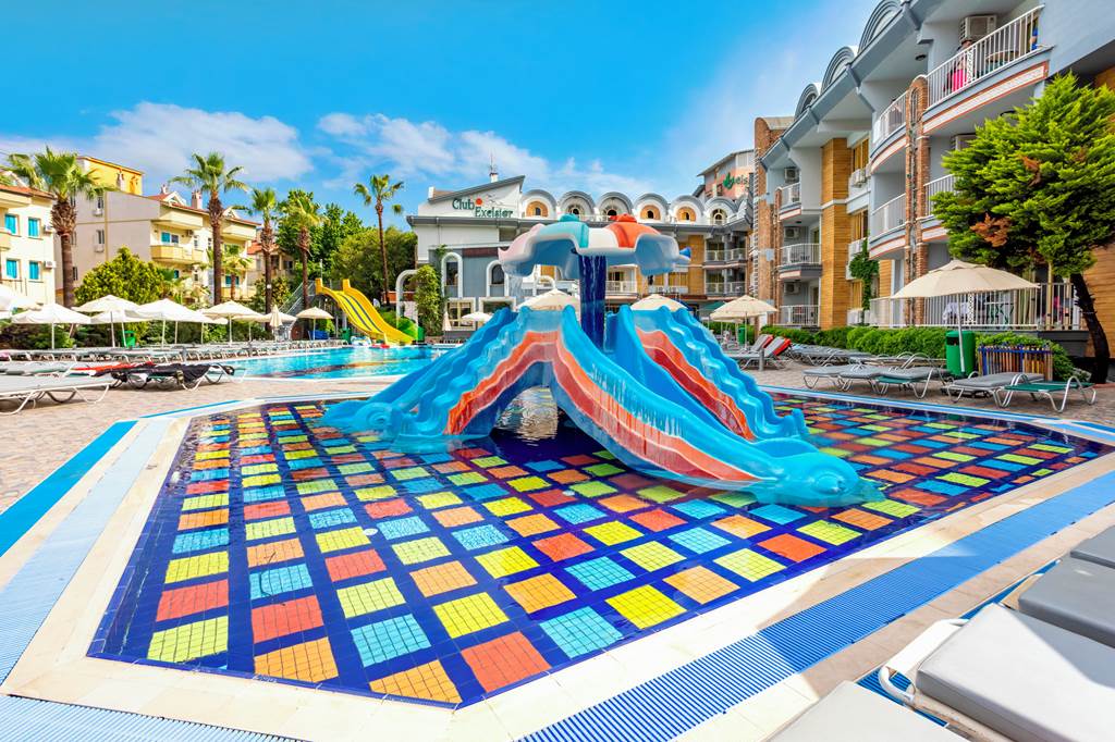 With its friendly and welcoming atmosphere, it?s no surprise Club Exelsior is a popular choice for those looking for a relaxing break in Turkey. The hotel offers spacious and well-equipped apartments, which are an ideal base for your stay in Marmaris. The splash park and impressive outdoor play area make this hotel an excellent choice for families, they are sure to keep the kids occupied while you soak up the sun around the large outdoor pool area. The hotel has a pool bar and a great entertainment programme, alternatively you can take a trip into the resort centre with a variety of restaurants and bars to choose from.One bedroom apartments sleep up to 3 adults and 1 child and have bathroom containing a shower, air conditioning*, hairdryer, flat screen television, kitchenette with fridge, double cooking rings, kettle, microwave, toaster and balcony.