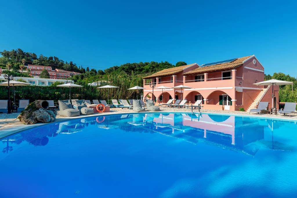 Located in beautiful gardens, the family-run Elena Stef Apartments are ideal for a relaxing holiday just a short distance from the stunning sandy beach of Sidari. The fish shaped pool is a cooling escape from the heat of the Greek sun and children have their own little pool too. With a snack bar you will be well catered for or head off to the resort centre a short distance away to savour the typical Greek tavernas and hospitality. This delightful hotel is a small family business where the owners make it their priority to ensure your holiday is the best it can be.Studios sleep up to 2 adults and 1 child and have bathroom containing a shower, air conditioning* (01 May-31 Oct), hairdryer, television, double cooking rings, fridge, kettle, oven and balcony or terrace.