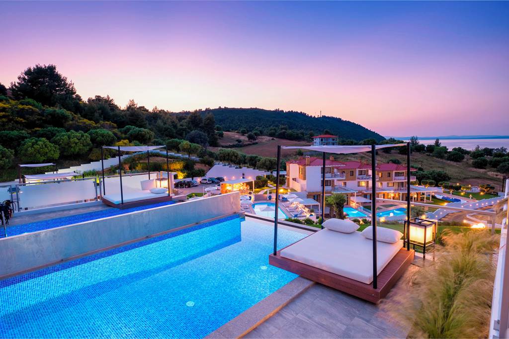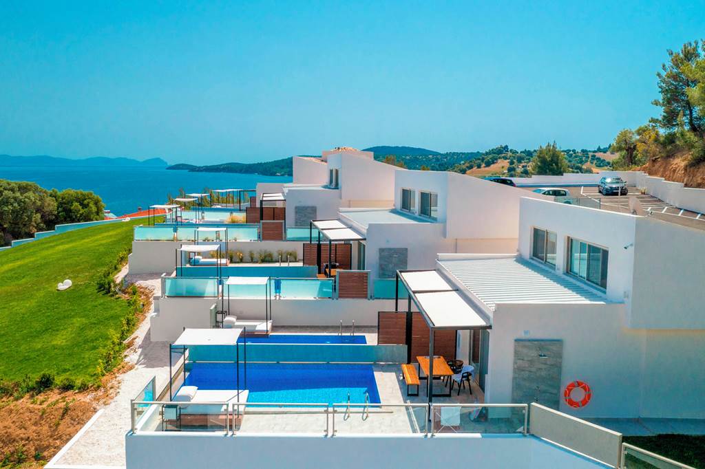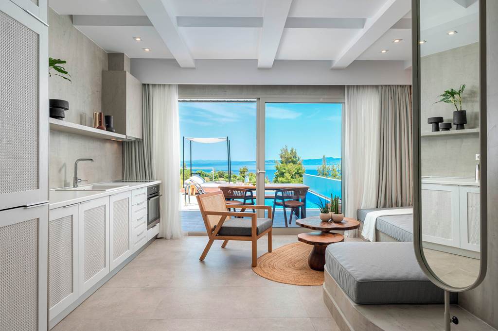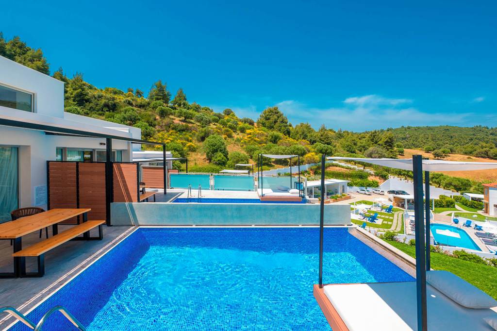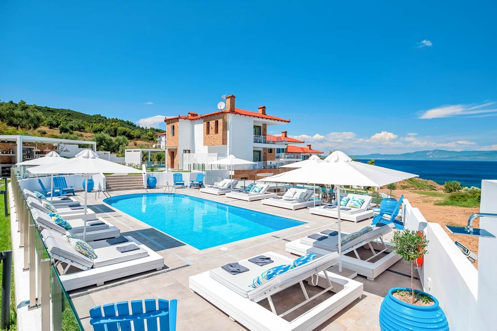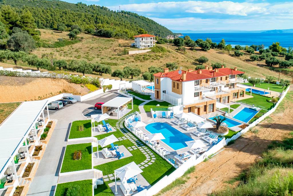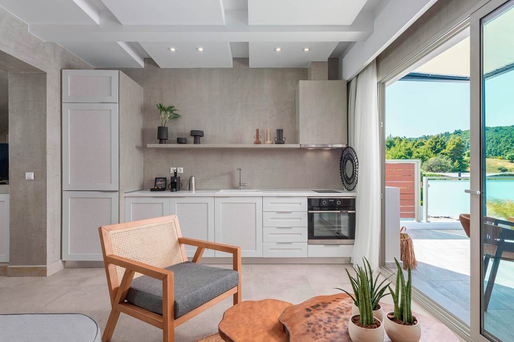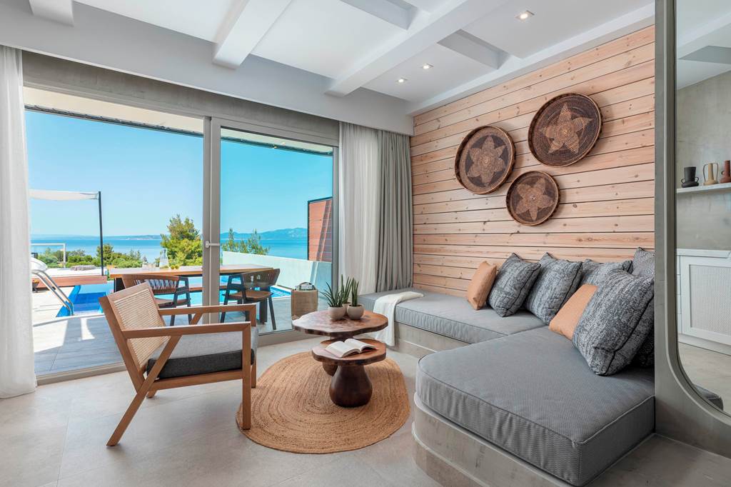 Villa D'oro Luxury Villas & Suites provides a truly restful retreat close to the sea with spectacular views. Set across four buildings, amongst the verdant surroundings, this property combines Aegean minimalism with a truly luxurious feel. The interiors of the modern and spacious suites have fantastic facilities and are fully equipped with everything for both couples and families to enjoy their time in Halkidiki. Breakfast is delivered to the door of your suite, for you to enjoy at your leisure on your private terrace, so you can start your day the right way! It will be easy to while away your time here, soaking up the sun on the cosy sunbeds by the pool, unwinding on the Blue Flag beach or heading out into the village of Paliouri. Why not treat yourself, and upgrade to a suite with a private pool? Heaven awaits!Junior suites sleep up to 4 adults and have a bathroom containing a shower, hairdryer, air conditioning, flat screen television, kitchenette with 2 cooking rings, oven, fridge, kettle and terrace. Room upgrade options are also available.