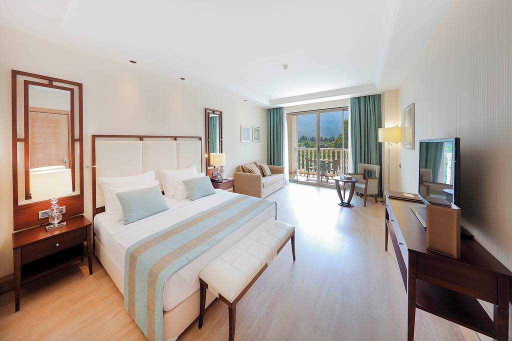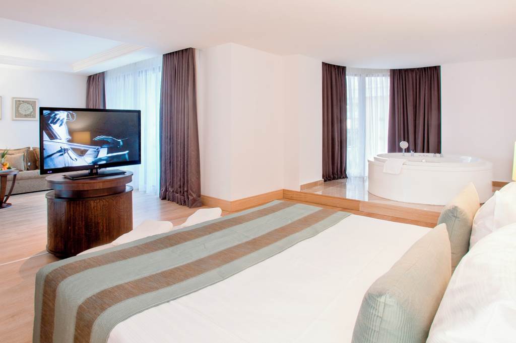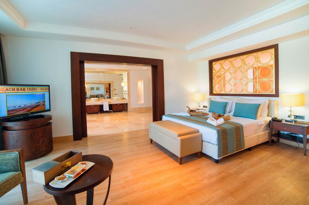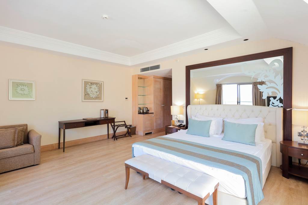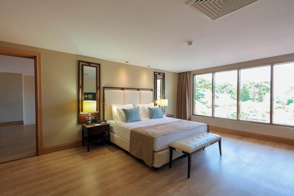Discover the ultimate beachfront escape at Juju Premier Palace, where stunning views and exceptional service meet the Mediterranean's crystal-clear waters. Guests can indulge in a variety of leisure options with multiple pools, including one featuring thrilling water slides for a splash of excitement. When it comes to dining, the hotel offers a selection of à la carte restaurants, catering to all tastes and culinary preferences. For those seeking relaxation and rejuvenation, the hotel's spa facilities provide a peaceful sanctuary to unwind and refresh. Juju Premier Palace truly has something for every age, offering fun-filled activities for children, relaxation for adults, and everything in between to ensure a perfect family getaway.Deluxe room with Land view sleep up to 2 adults and 2 children and have bathroom containing a shower or bath with shower attachment, air conditioning and Balcony. Room upgrade options and Sole Use rooms are also available.