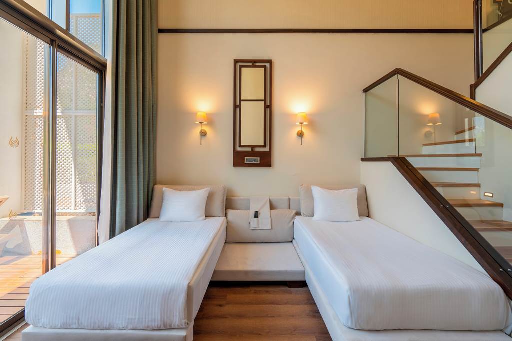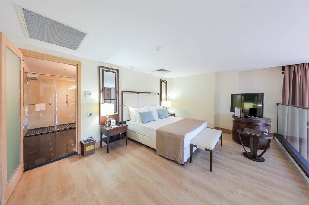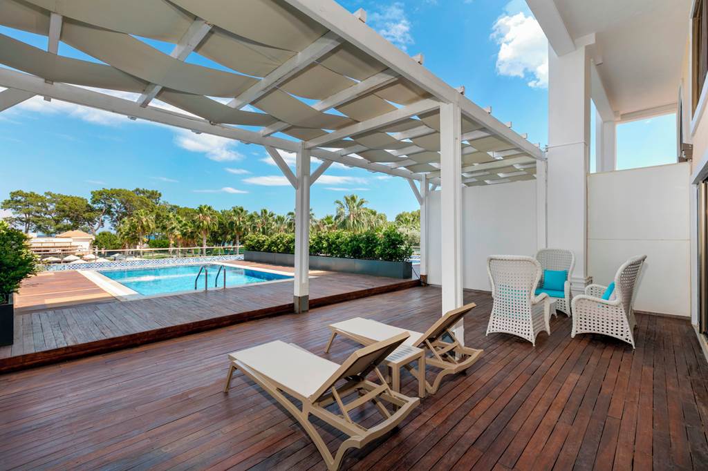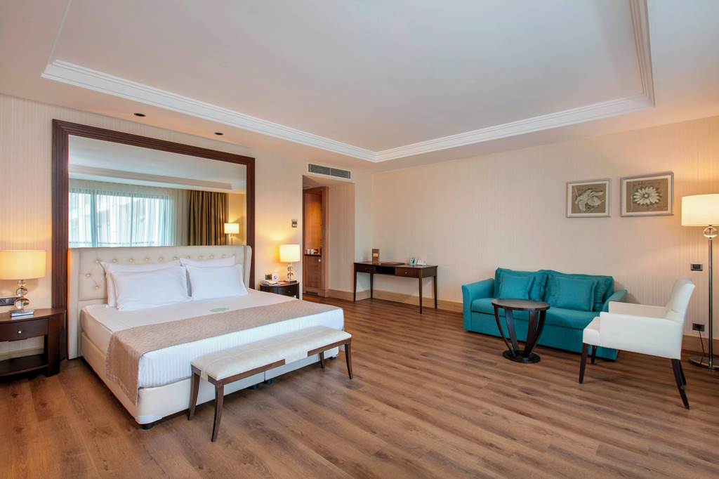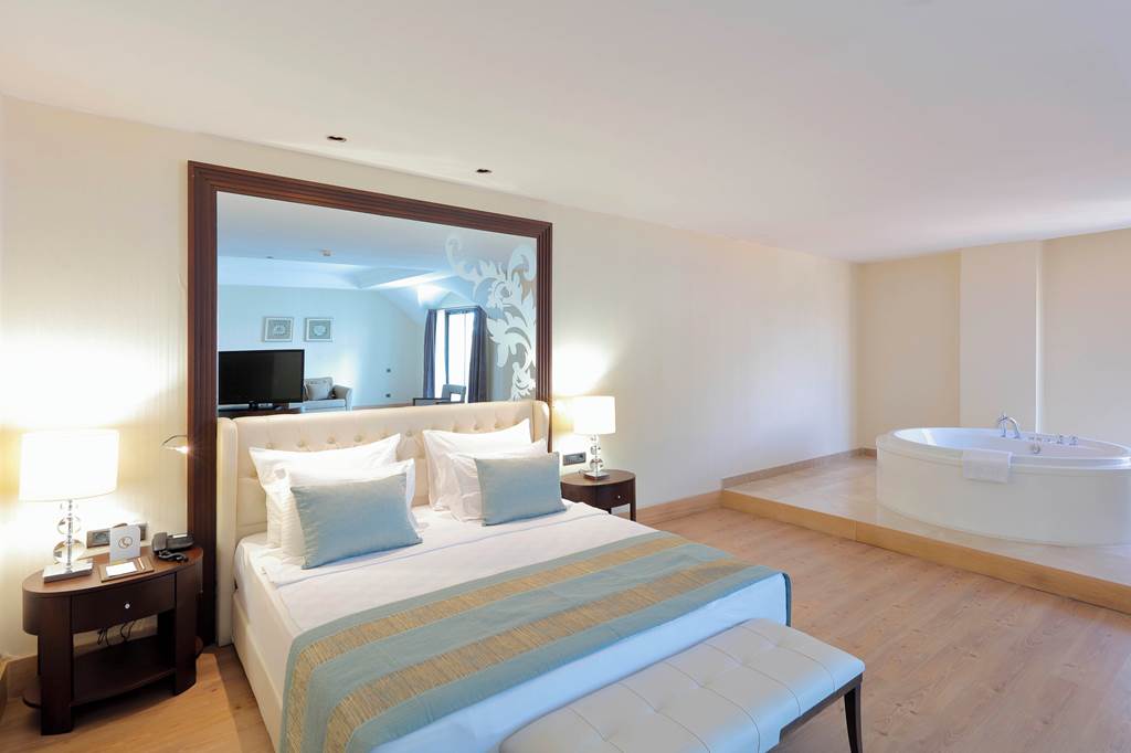 Discover the ultimate beachfront escape at Juju Premier Palace, where stunning views and exceptional service meet the Mediterranean's crystal-clear waters. Guests can indulge in a variety of leisure options with multiple pools, including one featuring thrilling water slides for a splash of excitement. When it comes to dining, the hotel offers a selection of à la carte restaurants, catering to all tastes and culinary preferences. For those seeking relaxation and rejuvenation, the hotel's spa facilities provide a peaceful sanctuary to unwind and refresh. Juju Premier Palace truly has something for every age, offering fun-filled activities for children, relaxation for adults, and everything in between to ensure a perfect family getaway.Deluxe room with Land view sleep up to 2 adults and 2 children and have bathroom containing a shower or bath with shower attachment, air conditioning and Balcony. Room upgrade options and Sole Use rooms are also available.