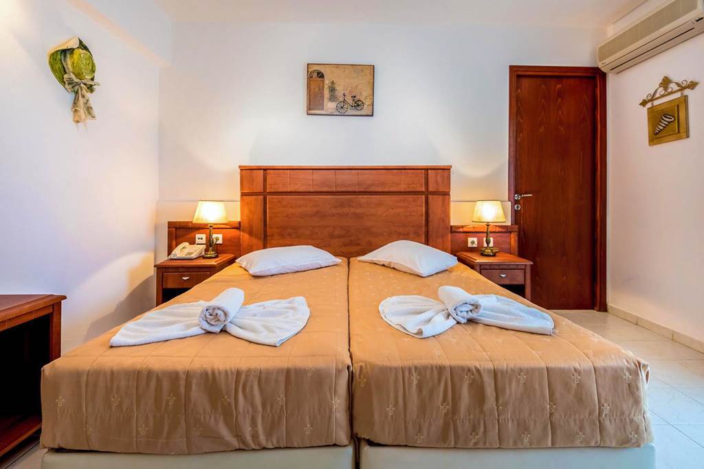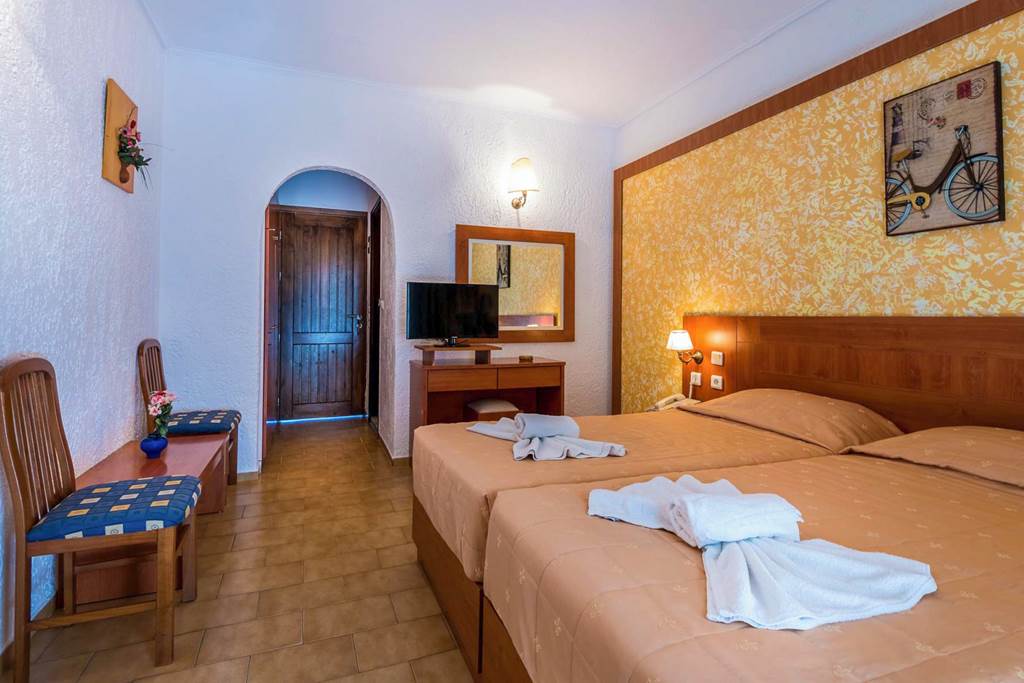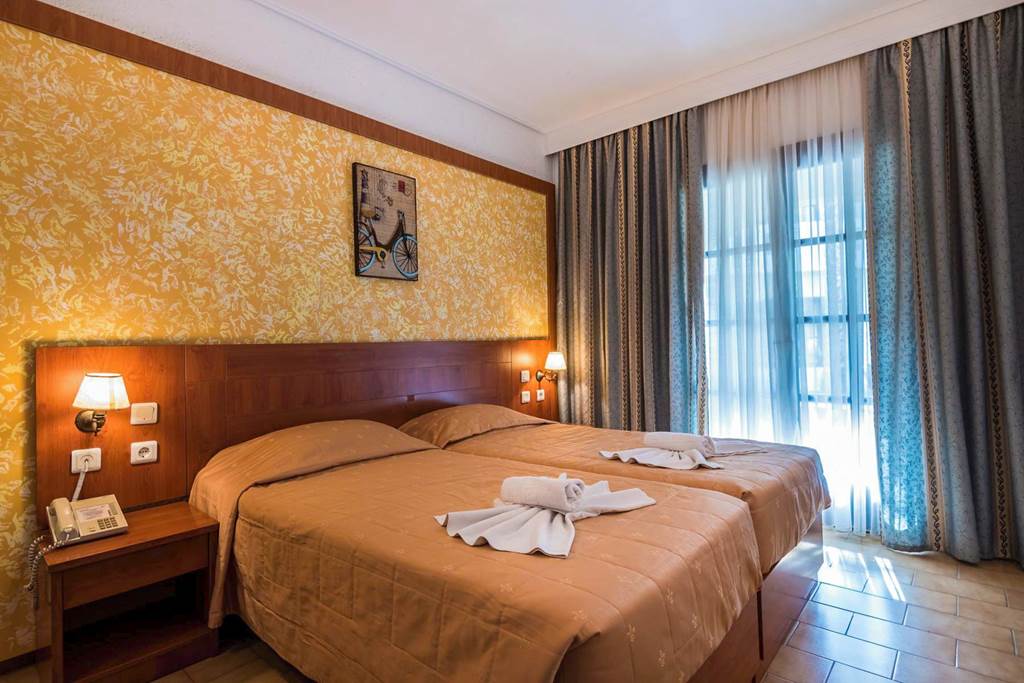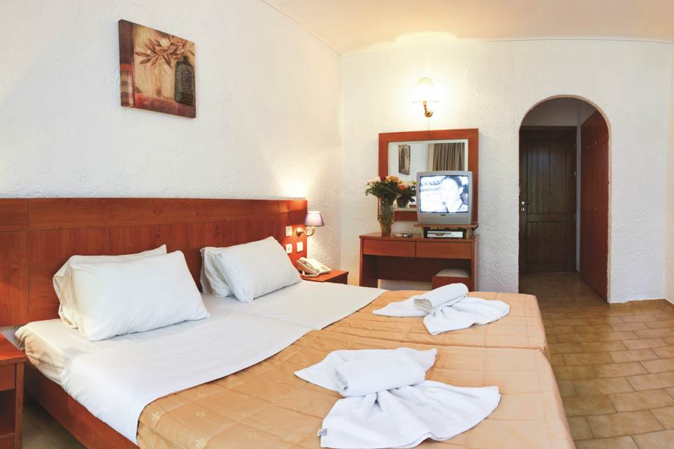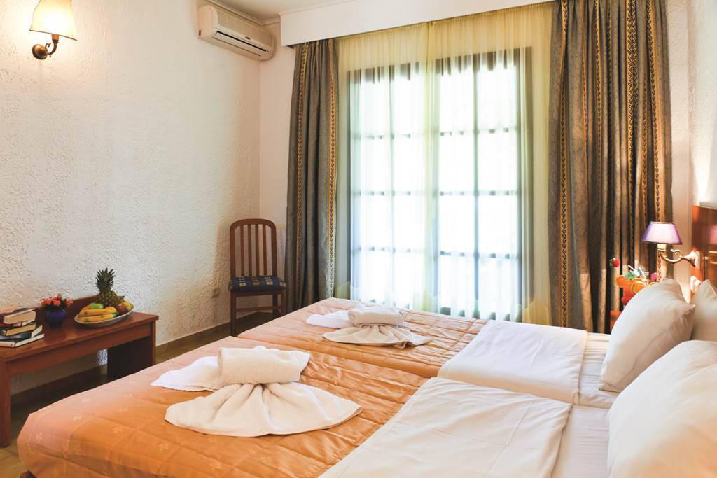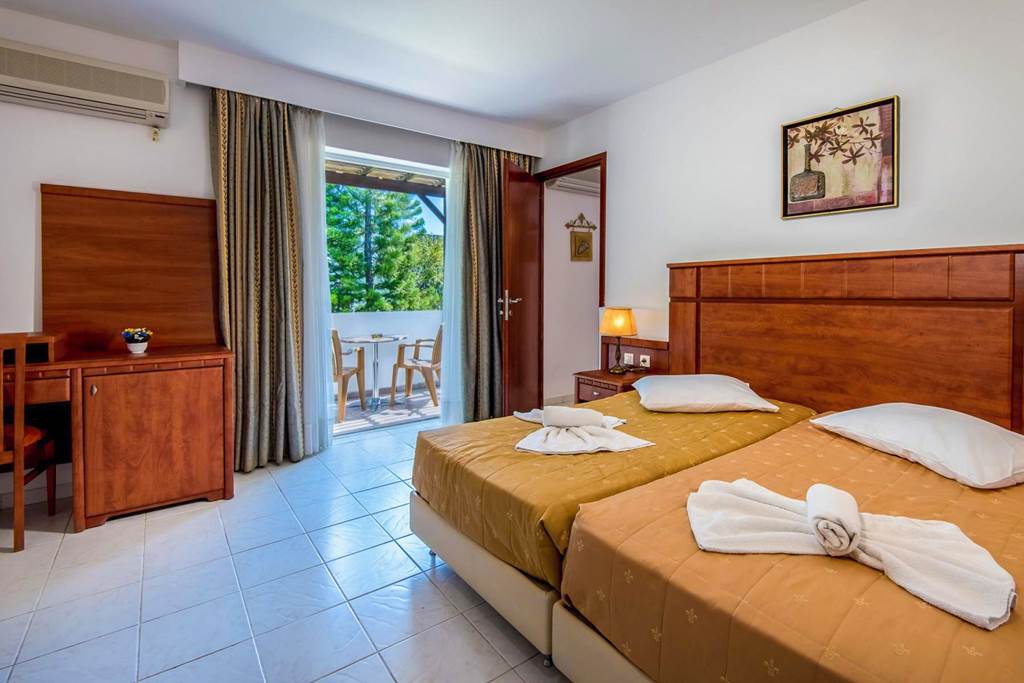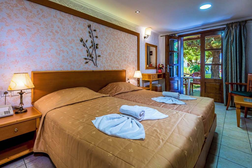 Twin rooms with Garden View sleep up to 3 adults and have bathroom containing a bath with shower attachment, hairdryer, air conditioning, television and balcony or terrace. Single rooms are also available.