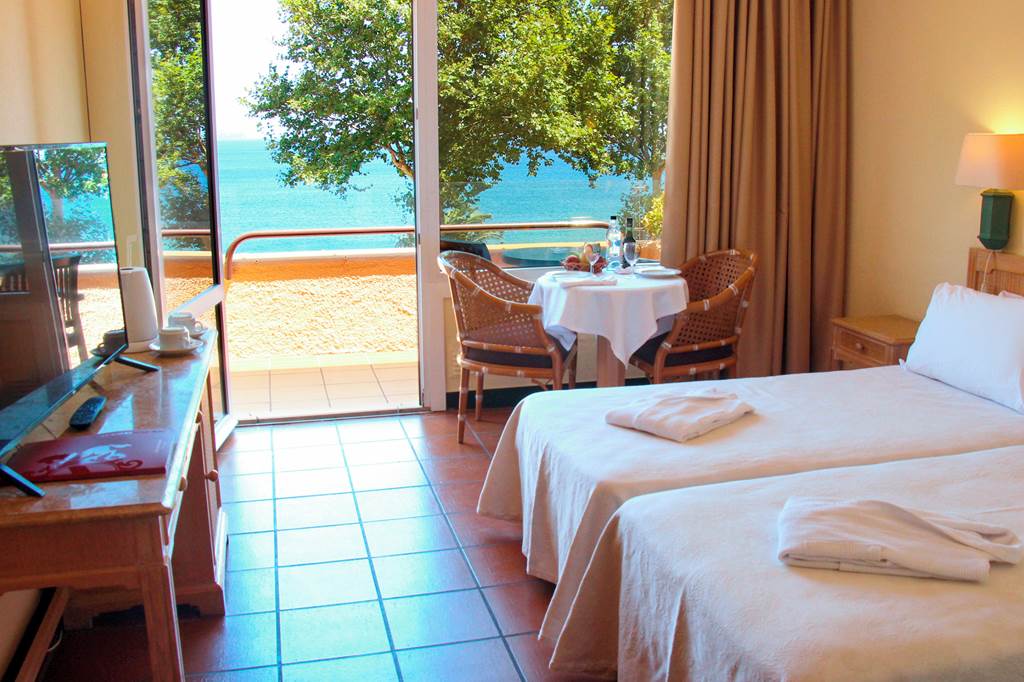 Twin rooms sleep up to 3 adults or 2 adults and 1 child and have a full bathroom and satellite TV. There is no balcony. Club Sea View rooms, Club Sea View rooms with balcony and Single rooms are also available. Suites with sea views sleeping up to 4 adults are also available. These do not have balconies.