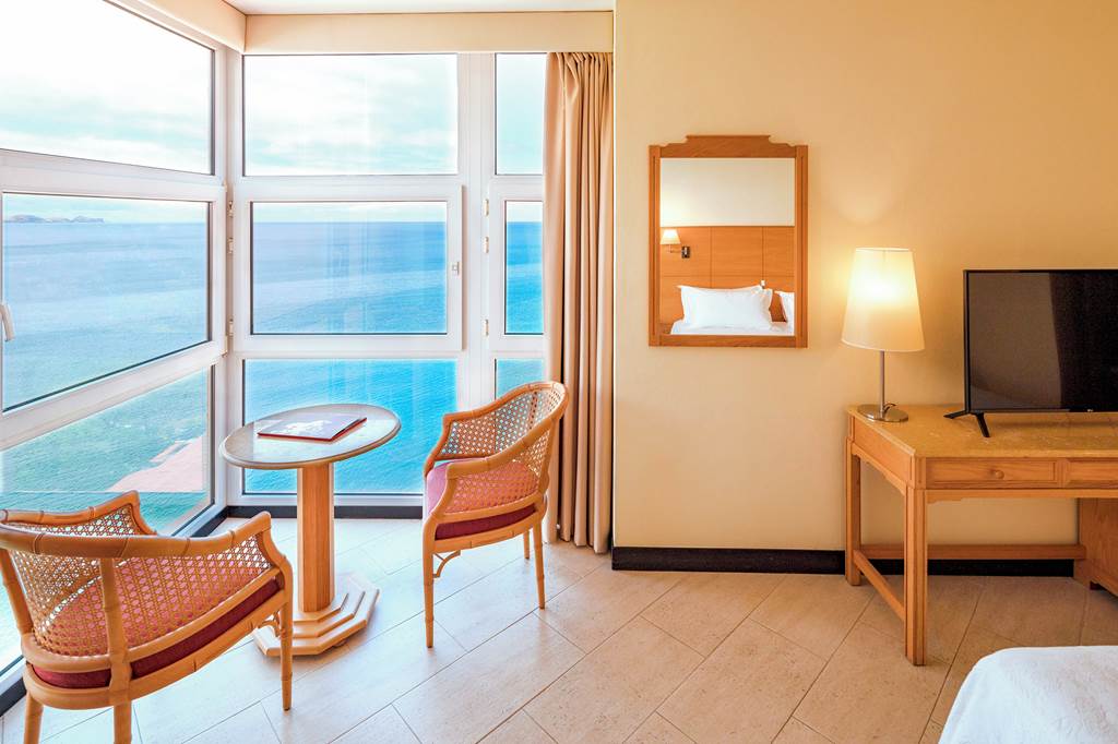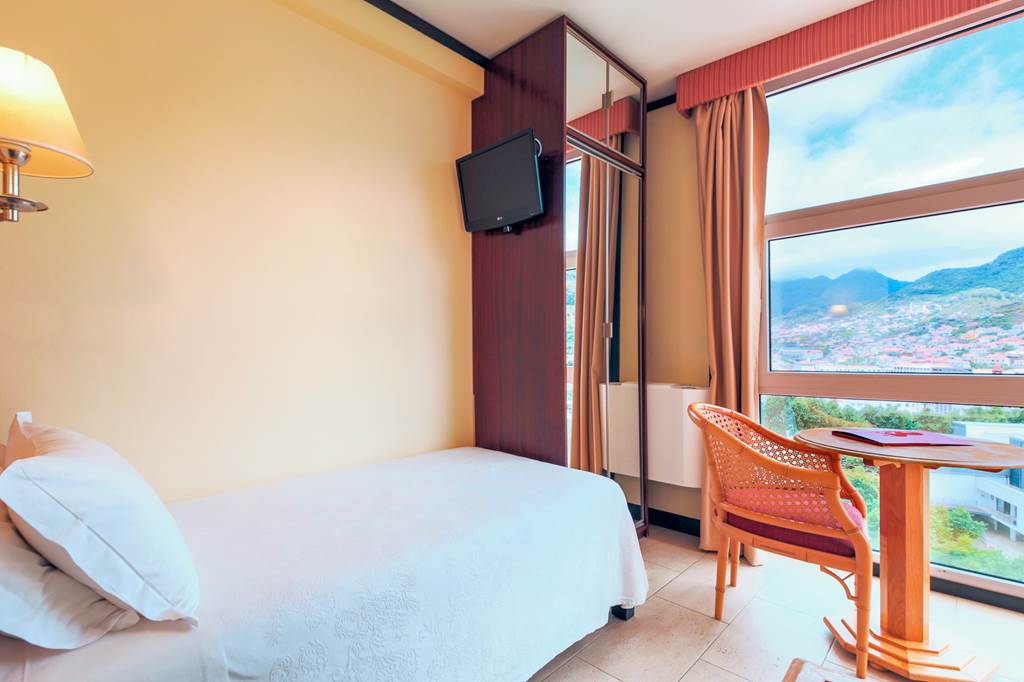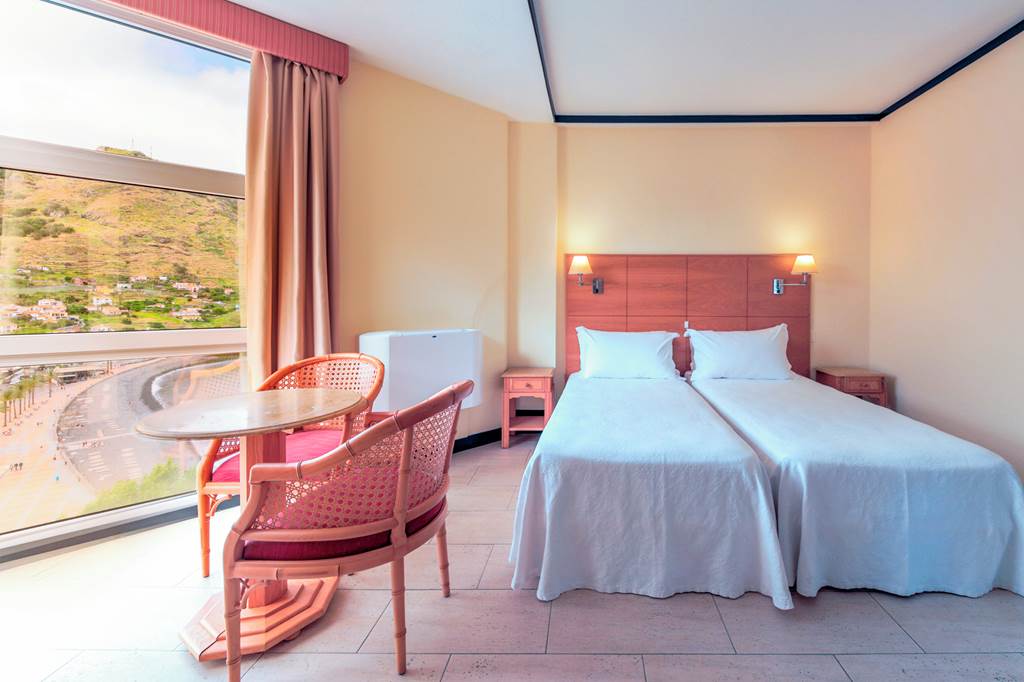 Set among the magnificent Machico mountains and close to a beautiful sandy beach, you?ll find this charming and traditional hotel. The stunning setting provides pretty panoramas whichever direction you look. Spend your days soaking up the sunshine by the pool or stroll along the promenade to the beach, which is minutes away. It?s the ideal choice for a great-value getaway to Madeira. Tasty meals are served in the buffet restaurant and there?s a handy poolside bar where you can grab cooling drinks. There?s a games room on-site with snooker and table tennis available, alongside a tennis and badminton court if you fancy a game. Entertainment is also provided by the hotel team.Twin rooms sleep up to 3 adults or 2 adults and 1 child and have a full bathroom and satellite TV. There is no balcony. Club Sea View rooms, Club Sea View rooms with balcony and Single rooms are also available. Suites with sea views sleeping up to 4 adults are also available. These do not have balconies.