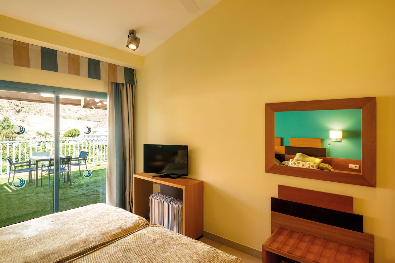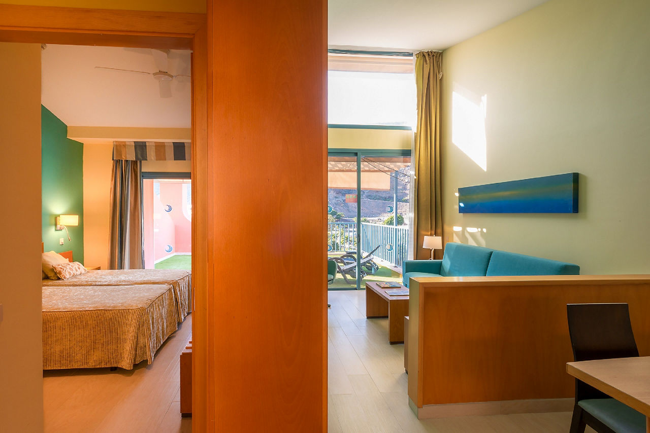 Immerse yourself here in the magical and picturesque fishing village of Puerto Mogan, surrounded by calming canals and beautiful bridges. The Cordial Mogan Valle Apartments offer bright and spacious accommodation suitable for all. Take a dip in one of the four outdoor pools within the complex, there?s even an onsite splash park for the little ones to enjoy. Children?s club and playground? You?ll find those here too. With a variety of board options this makes for the perfect family holiday. A buffet restaurant and selection of bars await, and there?s a fitness centre for those wanting to stay active. ROne Bedroom apartments sleep up to 3 adults or 2 adults and 2 children have full bathroom, hairdryer, ceiling fan in bedroom and lounge, lounge area with sofa bed, satellite TV, kitchenette with dining area, microwave, toaster, electric coffee maker, 2 cooking rings, fridge and kettle, and furnished terrace or balcony. Two Bedroom apartments sleeping up to 5 adults are also available.