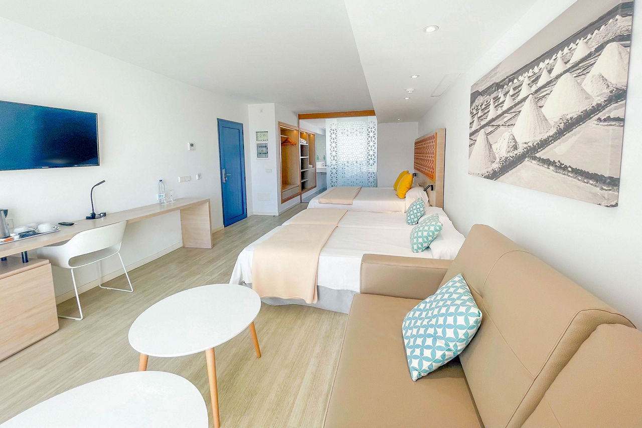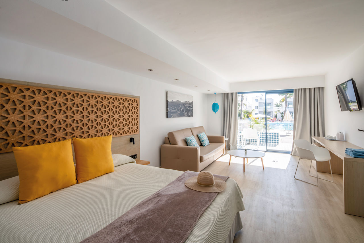 Oasis Lanz Beach Mate?s got relaxing stays down to a tee. Nestled in the heart of Costa Teguise, the palm-speckled plot boasts two outdoor pools, a fabulous buffet restaurant and contemporary décor throughout. Beach days high on the agenda? Las Cucharas is only 500m away. Mealtimes are easy on the Half Board package, but those on the hunt for some traditional Canarian cuisine can take a short stroll to nearby Costa Teguise. The well-equipped gym is sure to tick the staying-active box, but if sipping your favourite tipples in the sun is more your style, there?s a swish pool bar that?ll do the trick.Superior rooms sleep up to 2 adults and 1 child and have bathroom containing a shower only, air conditioning, flat screen television and balcony or terrace.