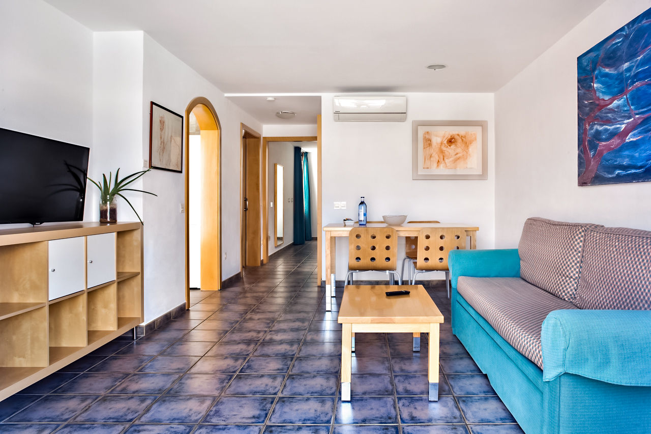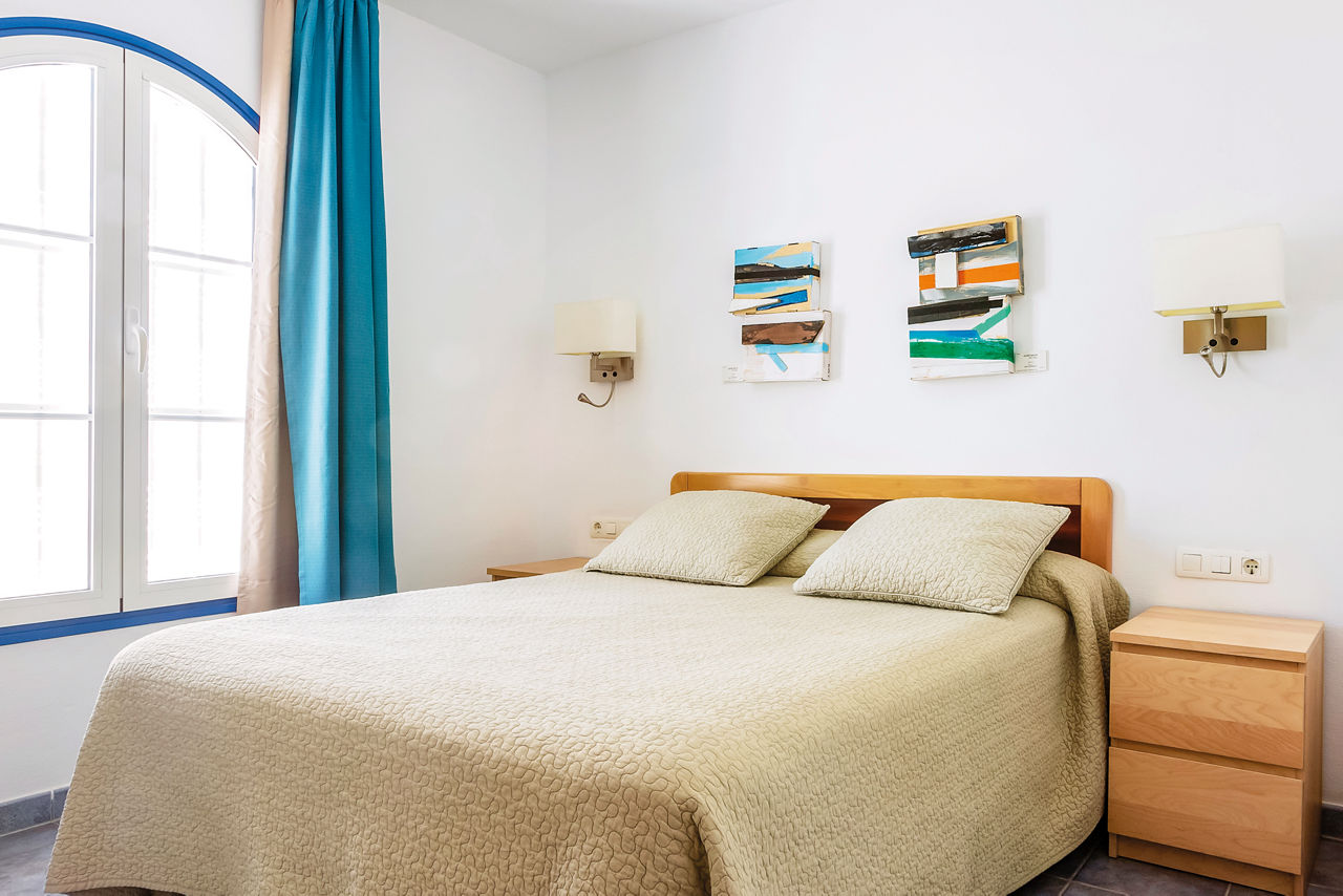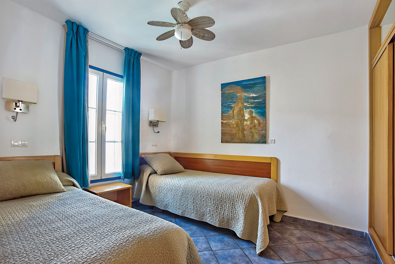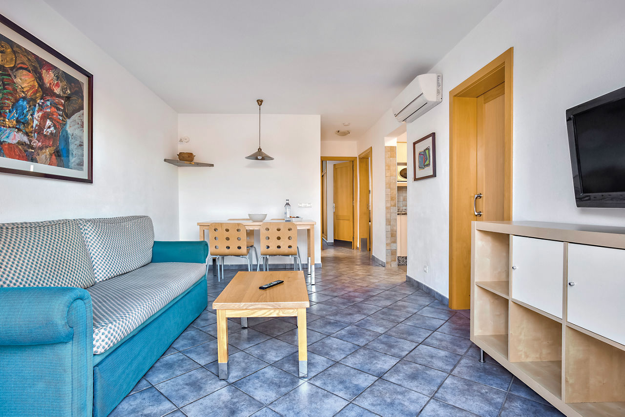 One bedroom apartments sleep up to 3 adults and have separate bedroom with twin beds, a sofa bed in the lounge, bathroom with walk-in shower, hairdryer, flat screen TV, kitchen with 2 cooking rings, fridge, toaster, kettle and microwave, and furnished terrace. Two bedroom apartments sleeping up to 4 adults and Two bedroom superior apartments with additional facilities including view, bathroom with walk-in shower and DVD player, are also available. Adapted apartments for guests with limited mobility and services and specific technical assistance are also available on request.