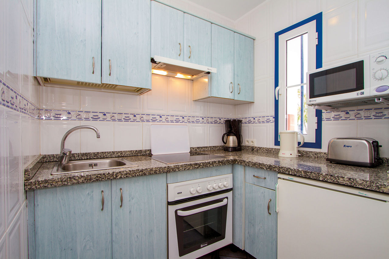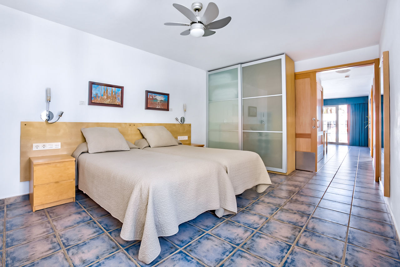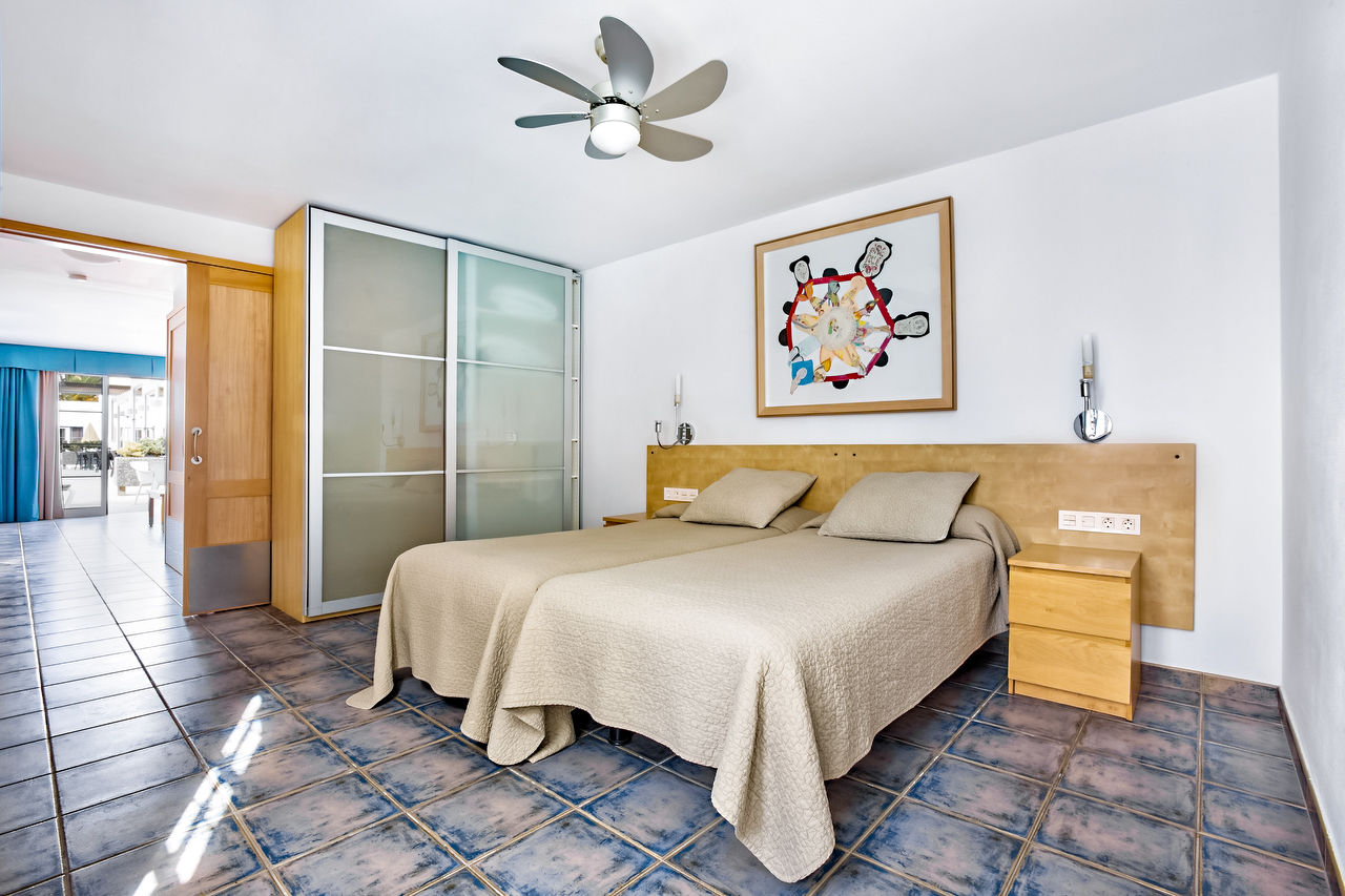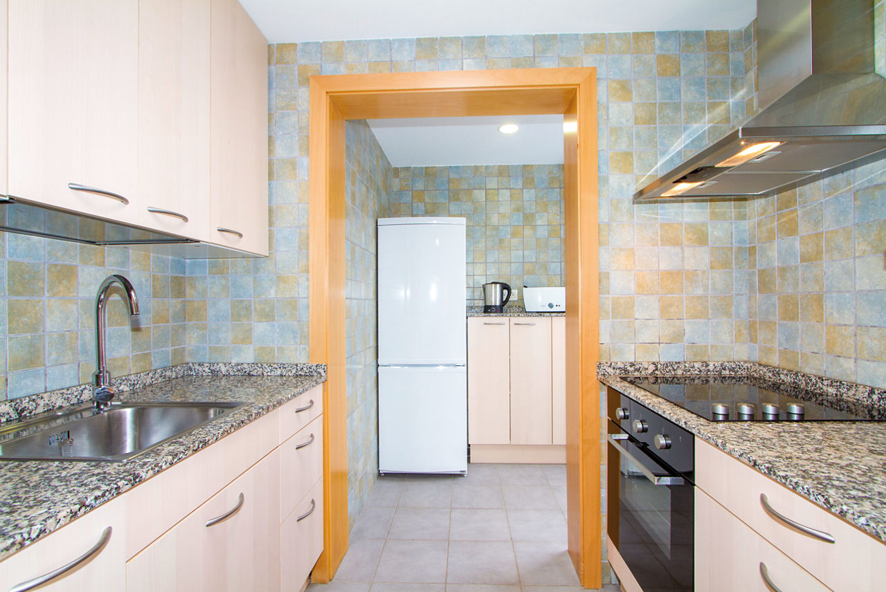 One bedroom apartments sleep up to 3 adults and have separate bedroom with twin beds, a sofa bed in the lounge, bathroom with walk-in shower, hairdryer, flat screen TV, kitchen with 2 cooking rings, fridge, toaster, kettle and microwave, and furnished terrace. Two bedroom apartments sleeping up to 4 adults and Two bedroom superior apartments with additional facilities including view, bathroom with walk-in shower and DVD player, are also available. Adapted apartments for guests with limited mobility and services and specific technical assistance are also available on request.