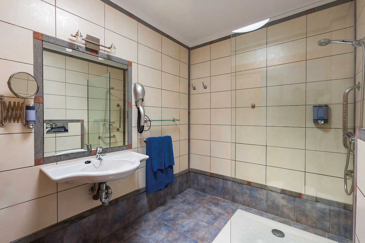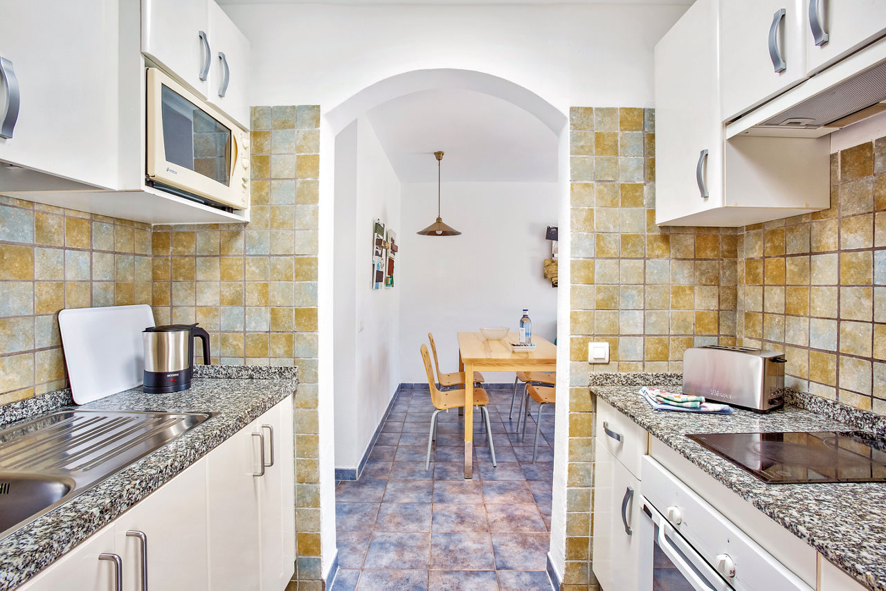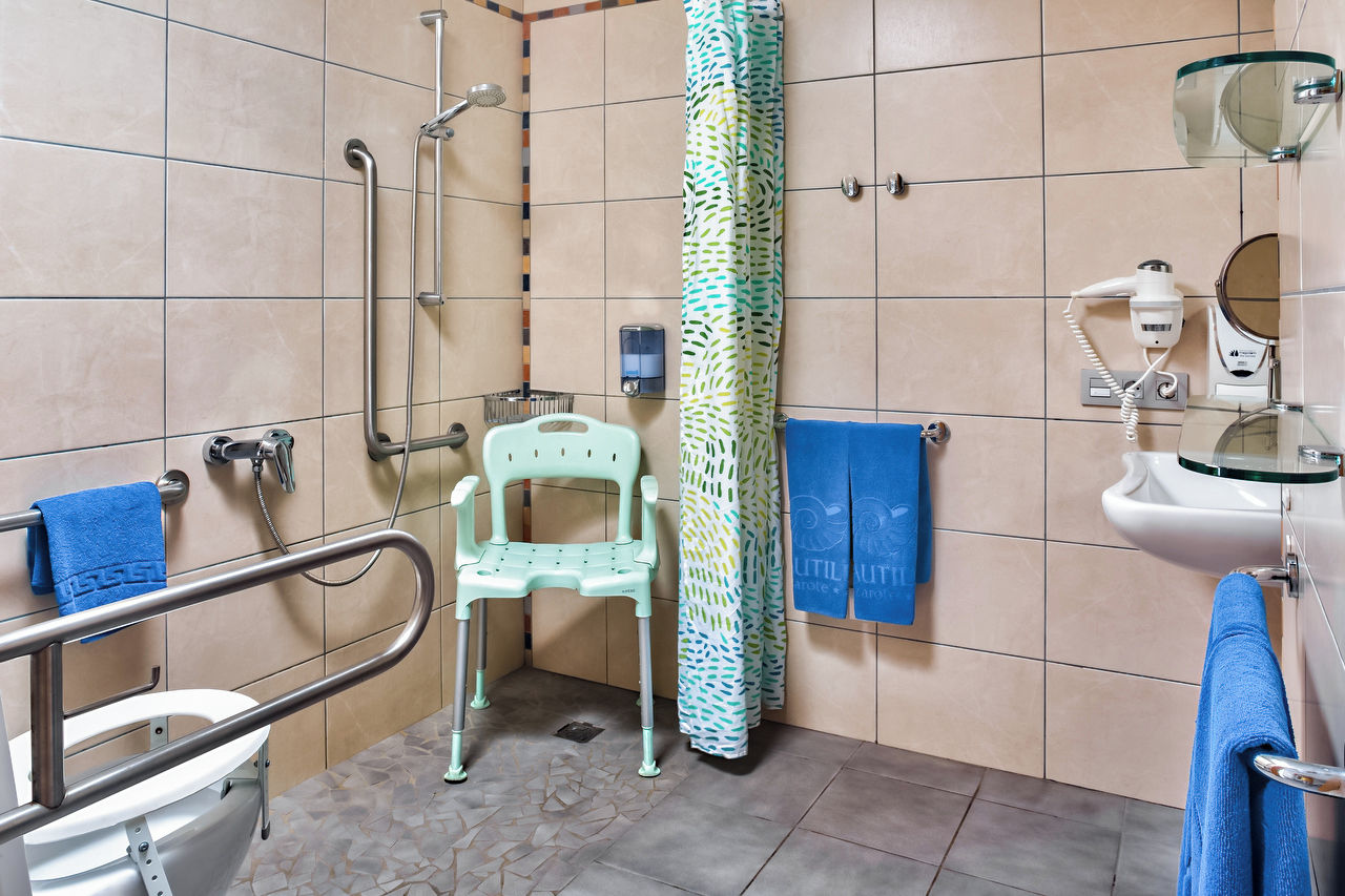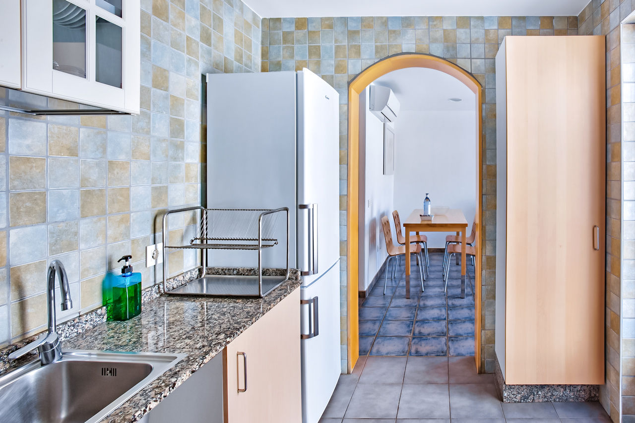 One bedroom apartments sleep up to 3 adults and have separate bedroom with twin beds, a sofa bed in the lounge, bathroom with walk-in shower, hairdryer, flat screen TV, kitchen with 2 cooking rings, fridge, toaster, kettle and microwave, and furnished terrace. Two bedroom apartments sleeping up to 4 adults and Two bedroom superior apartments with additional facilities including view, bathroom with walk-in shower and DVD player, are also available. Adapted apartments for guests with limited mobility and services and specific technical assistance are also available on request.